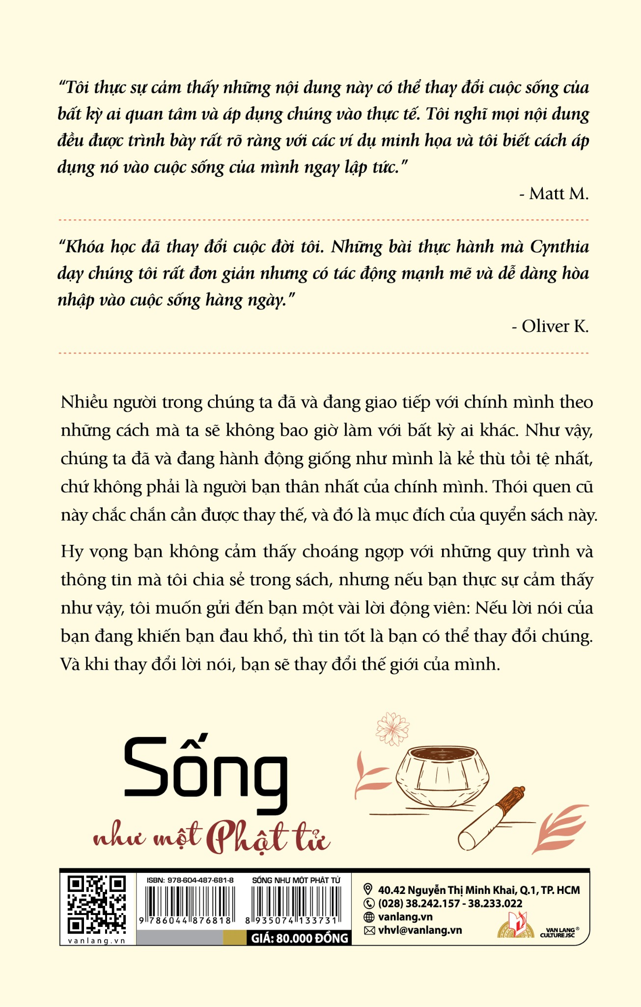 SỐNG NHƯ MỘT PHẬT TỬ - Độc Thoại Bằng Triết Lý Phật Giáo - Cynthia Kane - Lê Tiến Thành dịch - Giá bìa: 80.000đ