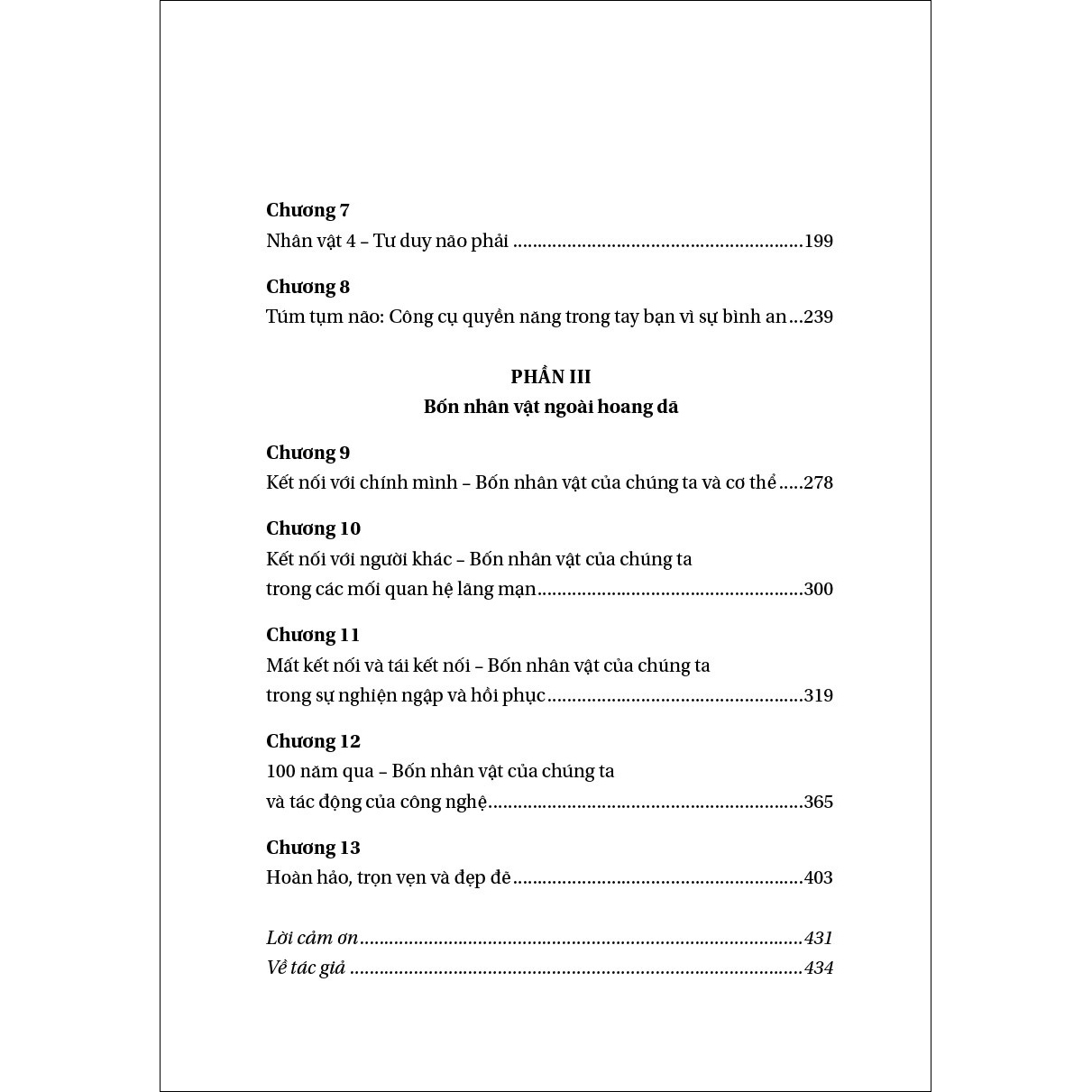 Chúng ta càng quen thuộc với từng nhân vật của bản thân và của người khác, chúng ta càng có sức mạnh kiểm soát suy nghĩ, cảm xúc, các mối quan hệ và cuộc sống của chúng ta. Trên thực tế, chúng ta sẽ nhận ra rằng mình có sức mạnh lựa chọn con người và cách thức chúng ta muốn thể hiện trong từng khoảnh khắc. Và khi bốn nhân vật của chúng ta kết hợp với nhau và cân bằng thành một bộ não trọn vẹn, chúng ta sẽ có cơ hội mở ra một lộ trình mới để vươn tới sự bình an của nội tại.