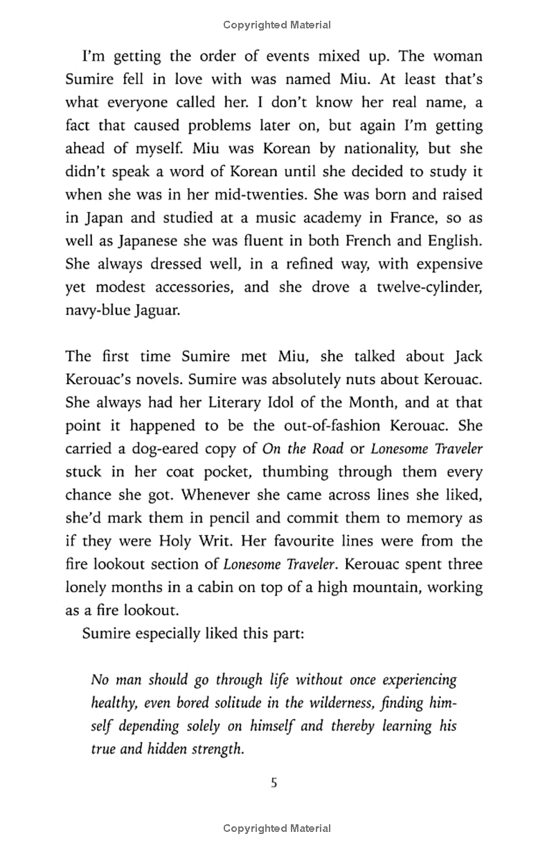 Sumire is in love with a woman seventeen years her senior. But whereas Miu is glamorous and successful, Sumire is an aspiring writer who dresses in an oversized second-hand coat and heavy boots like a character in a Kerouac novel.