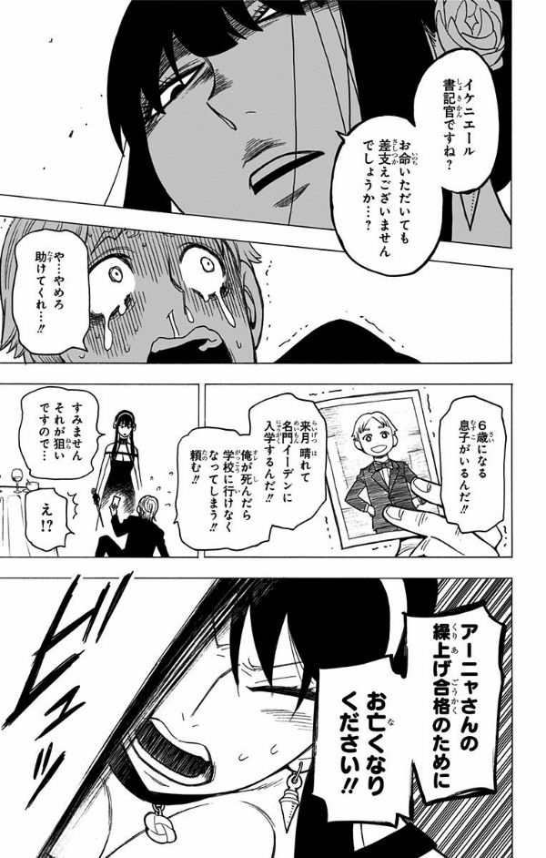 東国と西国、両国間の平和を守る任務のため、名門校受験に挑んだフォージャー一家。だが、標的デズモンドに近づくにはアーニャが特待生にならなくてはいけない!! そこで黄昏は“ナカヨシ作戦”を実行するが…!?