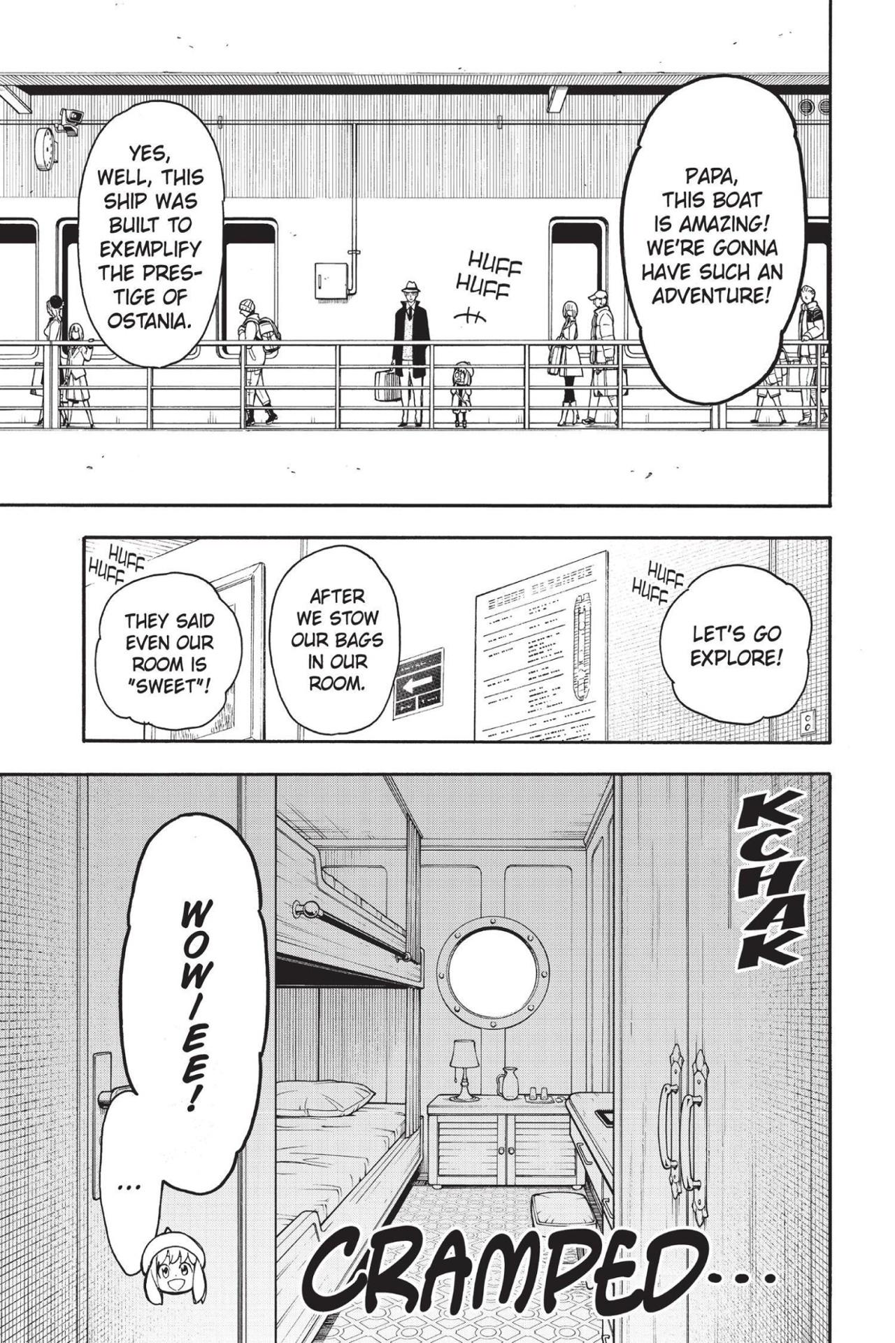Yor is assigned to be a bodyguard for a mafia family on a cruise ship by the secret organization Garden. But with Lloyd and Anya also on board thanks to a giveaway they won, Yor is starting to have doubts about her secret life as an assassin…