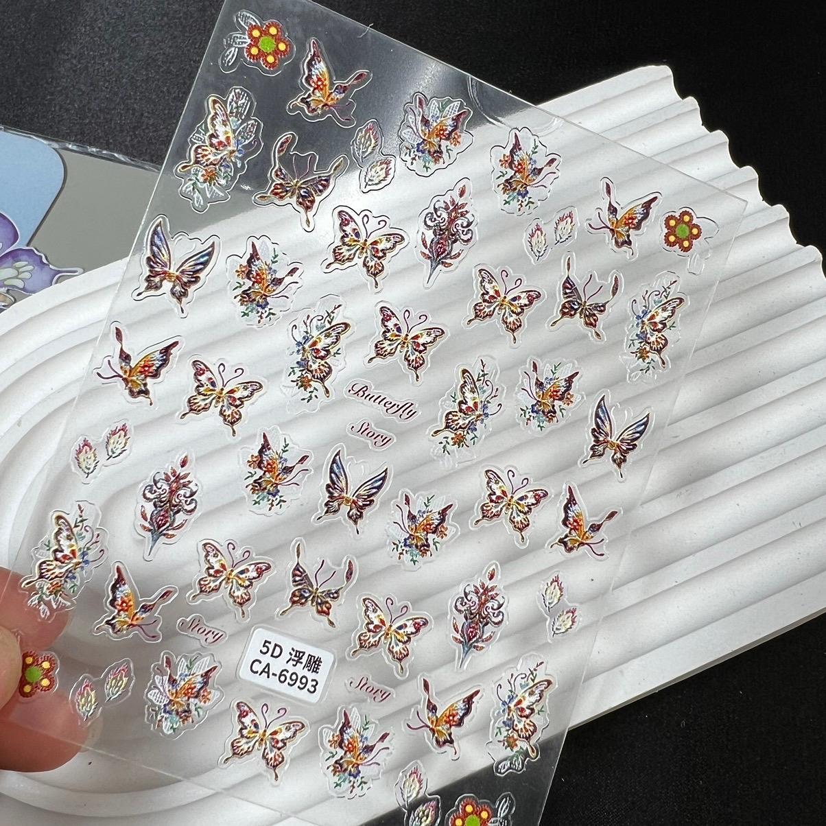 Sticker 5D Bướm Lụa Nổi Gắn Móng CA6993 Làm Nail, Miếng Dán Bướm Lụa 5D Nhiều Màu Trang Trí Hình Dán Móng Hàn Quốc Hiệu ứng 5D sống động: Miếng dán bướm lụa 5D với