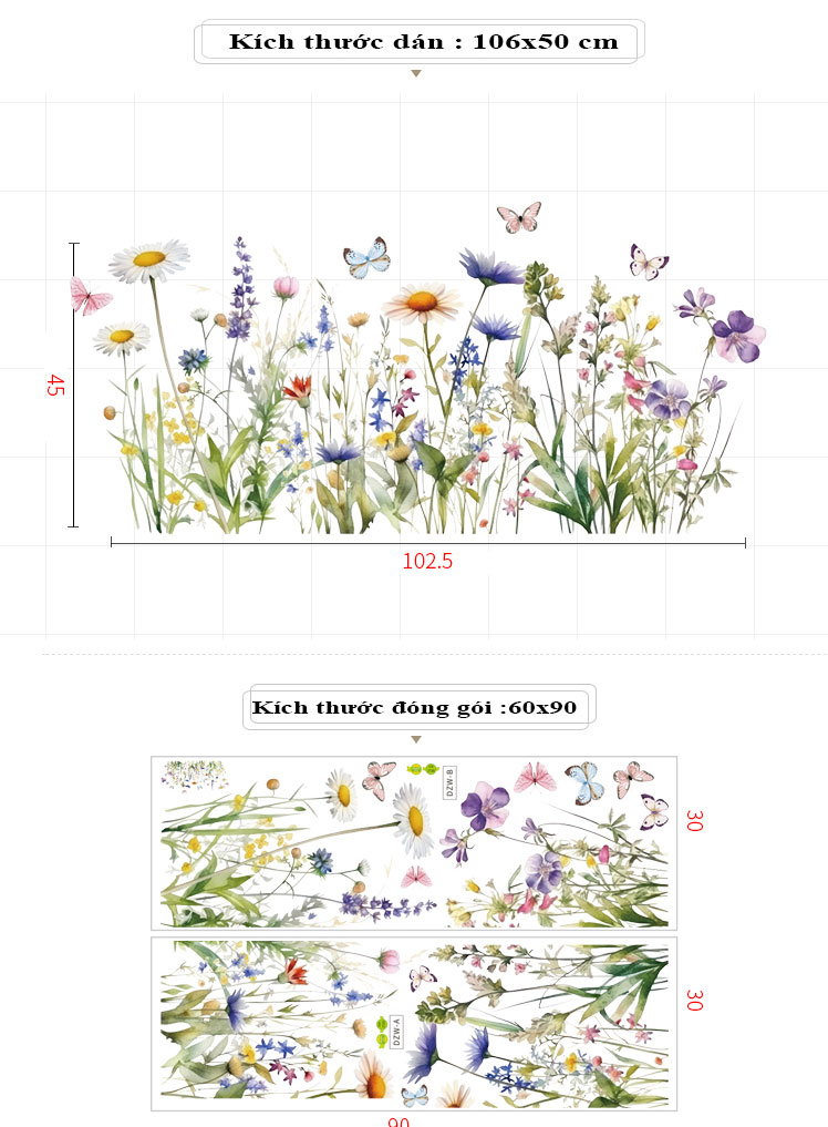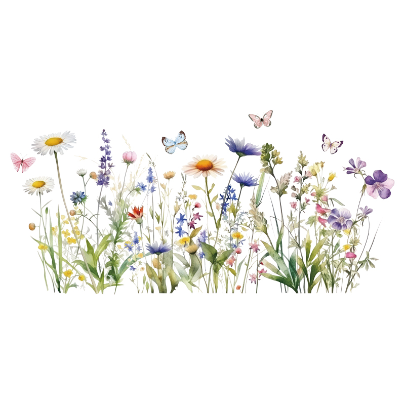 ✨Sticker Giấy Dán Tường Decal Dán tường Tranh Dán Tường Trang Trí Tường Mẫu Cánh Đồng Hoa Bướm ZDB-2720
