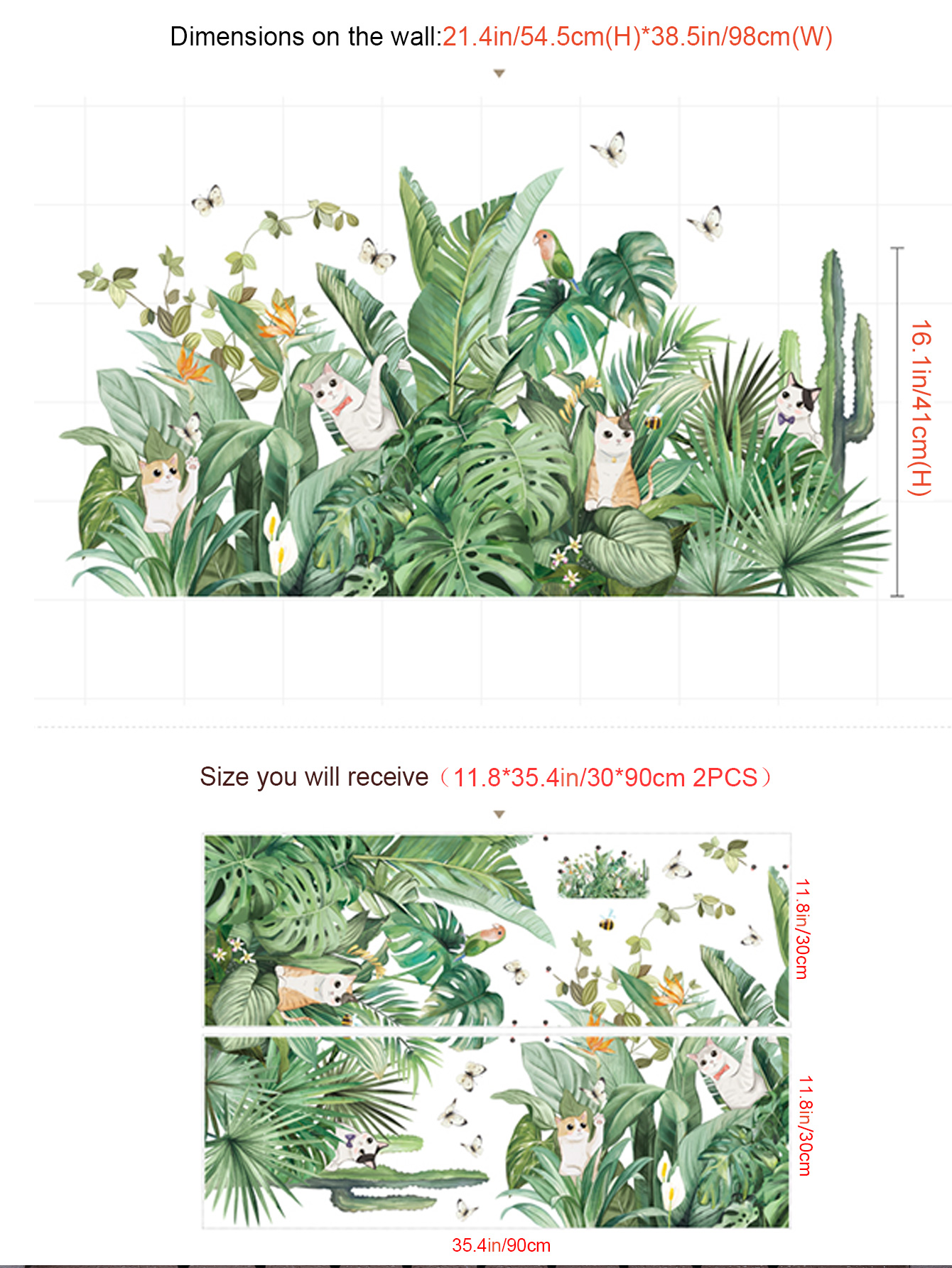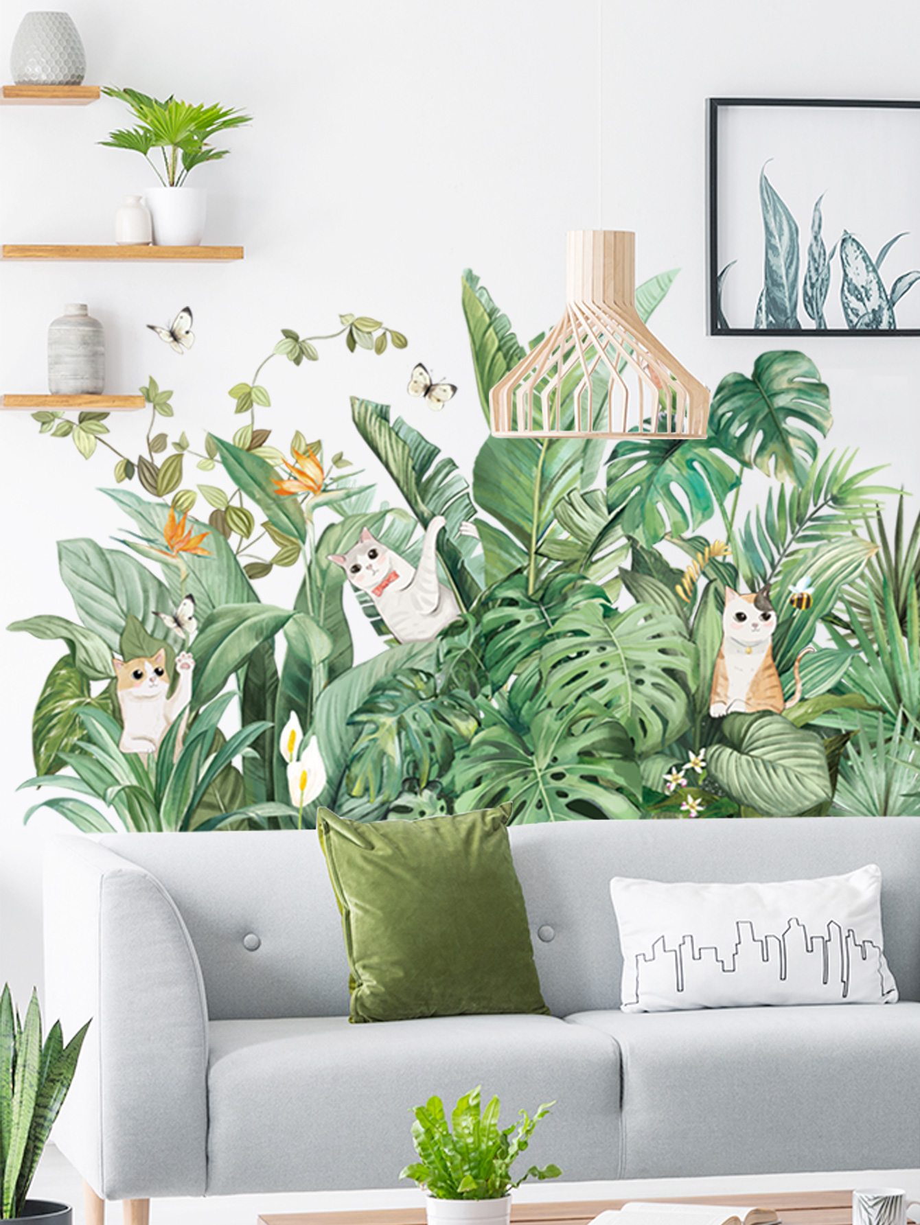 ✨Sticker Giấy Dán Tường Decal Dán tường Tranh Dán Tường Trang Trí Tường Mẫu Hoa Lá Mèo Chim Phong Cách Vintage ZDB-2274