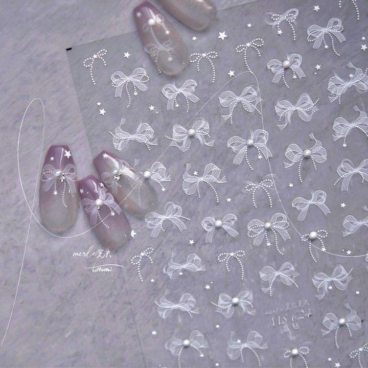 ✨Sticker Hình Nơ Nổi 5D Dán Móng, Sticker Hình Nơ Trắng Cao Cấp Làm Nail Miếng Dán Móng Tay Nơ Hàn Quốc Nữ Women
