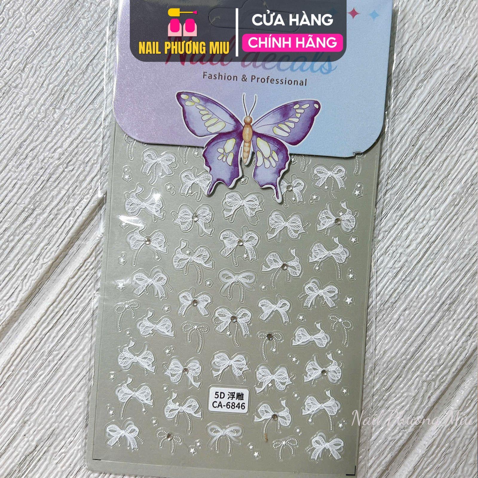 Sticker 5d Ren Nơ Đính Ngọc Hình Cánh Bướm CA6896 Nơ Ren Nổi Đính Đá Trắng Tinh Khôi Miếng Dán Dính Móng Tay Nghệ Thuật Hàn Quốc Sang Trọng Nữ Women Nghệ thuật làm móng