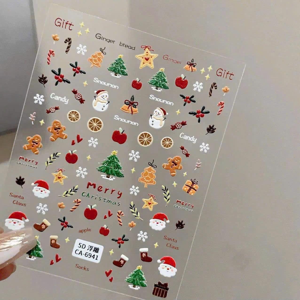 ✨Sticker Móng Tay Dập Nổi Dán Làm Nail Hình Giáng Sinh Vui Vẻ, Ông Già Noel, Dễ Thương, Mỏng Trong Suốt, Lưng Keo, Trang Trí Móng Tay Nghệ Thuật - Xmas