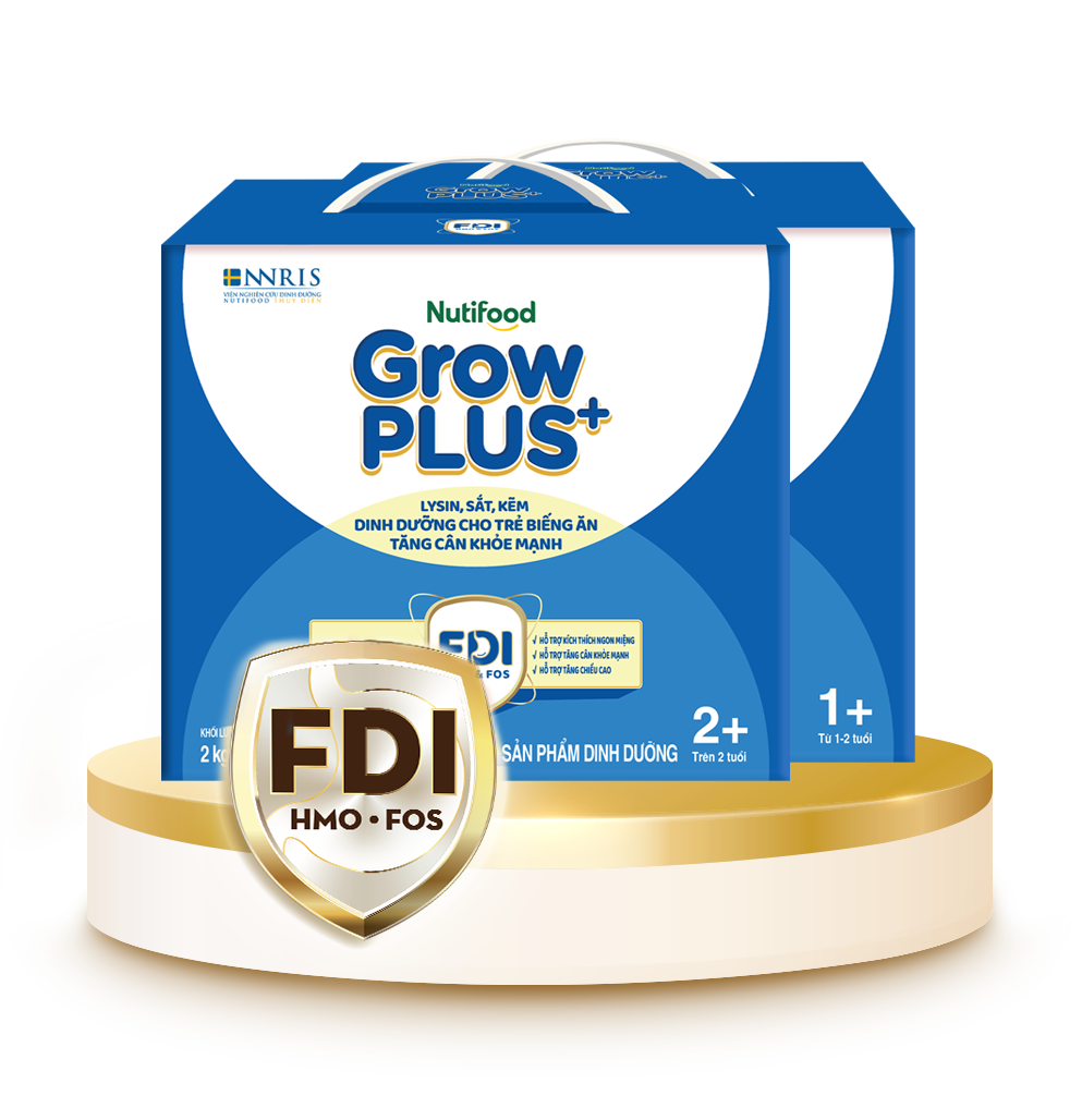 Mô tả sản phẩm: GrowPLUS+ Dinh dưỡng cho trẻ Biếng ăn Tăng cân khỏe mạnh với công thức FDI là sự kết hợp giữa thành tựu khoa học tiên tiến của Nutifood Thụy Điển cùng sự thấu hiểu thể trạng đặc thù của trẻ em Việt Nam của các Chuyên gia dinh dưỡng Nutifood trong 20 năm qua. Đây là công thức xây dựng trên nền tảng “Đề kháng khỏe, Tiêu hóa tốt” được bổ sung 2’-FL HMO nhập khẩu 100% từ Châu Âu, kết hợp cùng FOS, Inulin giúp hấp thu các dưỡng chất, tăng cường sức khỏe hệ tiêu hóa và sức đề kháng. GrowPLUS+ giàu năng lượng, chất đạm, chất béo, bổ sung thêm MCT, Lysin, Sắt, Kẽm... cho trẻ biếng ăn bắt kịp đà tăng trưởng. Đặc biệt, hệ thống quản lý chất lượng ISO 9001 được chứng nhận bởi ABS-QE Hoa Kỳ Lợi ích sản phẩm: Kích thích ngon miệng Hỗ trợ tăng cân, tăng chiều cao Đề kháng khoẻ Tiêu hoá tốt Độ tuổi sử dụng: Dành cho trẻ từ 1-2 tuổi Thông tin dinh dưỡng, thành phần: Xem trên bao bì Hướng dẫn bảo quản: Bảo quản nơi khô ráo thoáng mát, tránh ánh nắng trực tiếp, không lưu trữ trong tủ lạnh. Gấp và kẹp chặt miệng bao nhôm sau mỗi lần sử dụng. Nên dùng sản phẩm trước hạn sử dụng và sử dụng hết trong vòng 1 tháng sau khi mở bao bì. Thận trọng: Đổ bỏ phần thừa sau mỗi lần uống. Sản phẩm pha xong tốt nhất nên dùng ngay, trường hợp chưa dùng ngay phải đậy kín, bảo quản trong tủ lạnh từ 4 – 6 độ C và dùng trong vòng 24 giờ. CHÚ Ý: Sữa mẹ là thức ăn tốt nhất cho sức khỏe và sự phát triển toàn diện của trẻ nhỏ. Các yếu tố chống nhiễm khuẩn, đặc biệt là kháng thể chỉ có trong sữa mẹ có tác dụng giúp trẻ phòng, chống bệnh tiêu chảy, nhiễm khuẩn đường hô hấp và một số bệnh nhiễm khuẩn khác. Chỉ sử dụng sản phẩm này theo chỉ dẫn của bác sĩ. Pha chế theo đúng hướng dẫn. Cho trẻ ăn bằng cốc, thìa hợp vệ sinh.