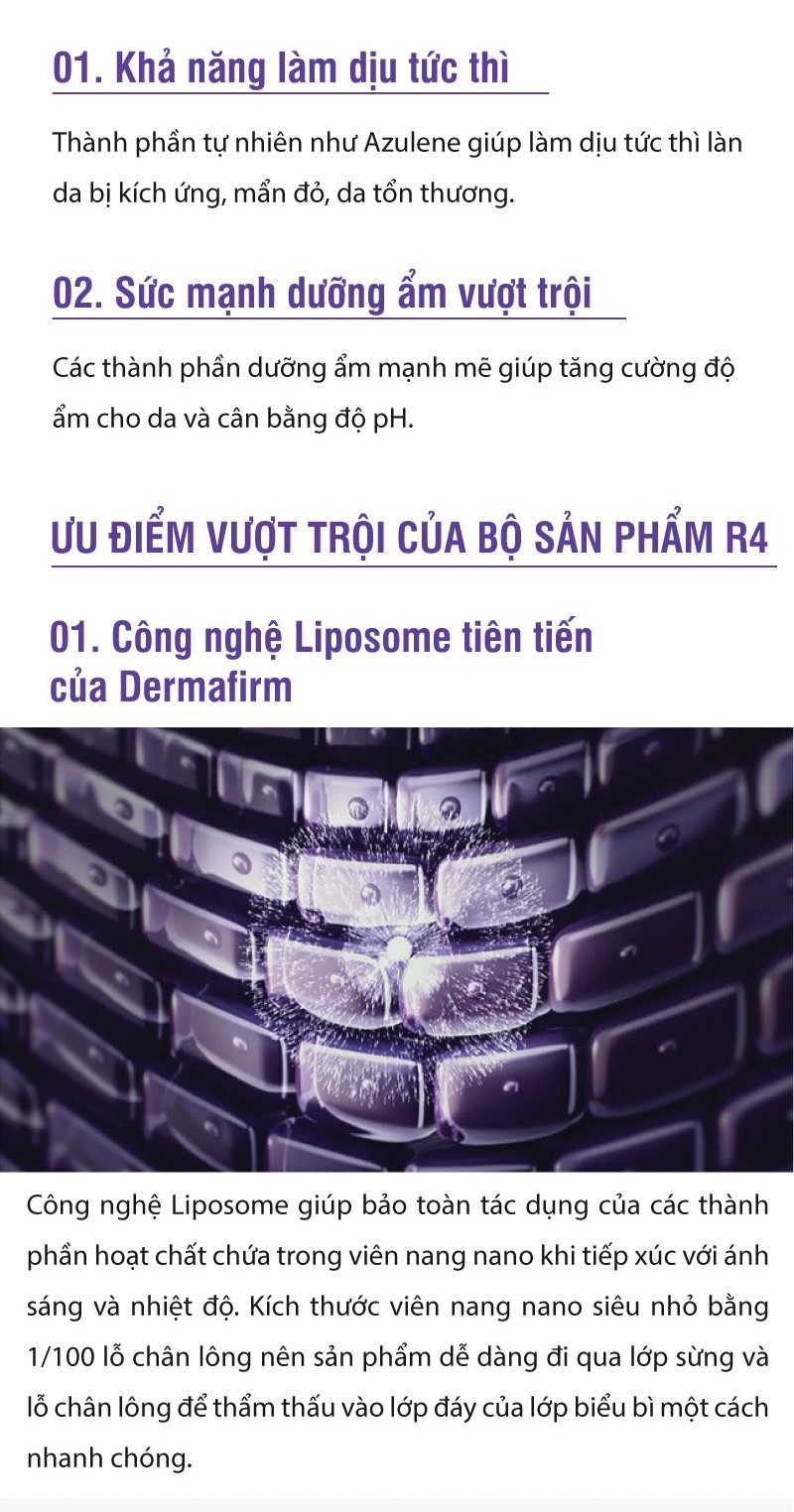 - Được ứng dụng công nghệ Elastic Liposome hiện đại giúp định vị chính xác những tế bào tổn thương, đưa dưỡng chất vào đúng các tế bào tổn thương để cải thiện và phục hồi làn da.