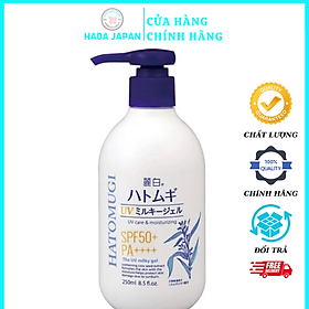 Sữa Dưỡng Thể Chống Nắng Hatomugi SPF31 PA+++ 250ml Reihaku Hatomugi UV Milky Gel ***Lưu ý: dung tích 250ml có chống nắng. 400ml hãng không làm chống nắng, dung tích to mình dùng được cả