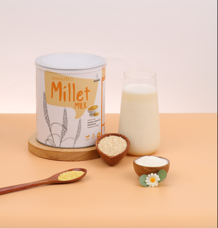 - ĐẶC ĐIỂM NỔI BẬT: Millet là một sản phẩm sữa thực vật với nguyên liệu chính là thực vật hữu cơ ở dạng nảy mầm giúp tối ưu hóa thành phần dinh dưỡng chứa trong các loại hạt, giúp cơ thể dễ dàng hấp thu và loại bỏ tối đa các chất cản trở hấp thu. Millet cung cấp gấp 10 lần hàm lượng GABA so với cùng 1 thể tích sữa gạo thông thường;