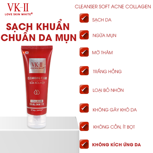 Mua tại TiktokSữa rửa mặt VK II Cleasing Foam Collagen Mộc Love Skin White 80ml THÔNG TIN CHI TIẾT VỀ SỮA RỬA MẶT VK II CLEASING FOAM COLLAGEN MỘC LOVE SKIN WHITE