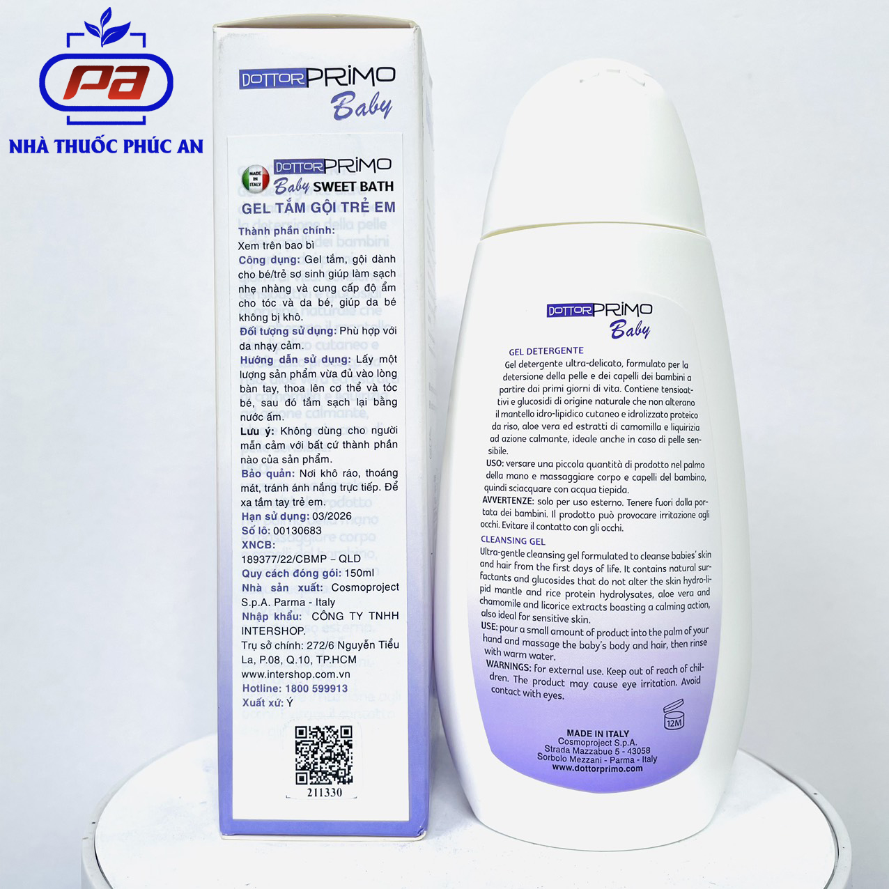 Sữa tắm gội cho bé DottorPrimo Baby Sweet Bath 150ml dùng được cho da nhạy cảm NHÀ THUỐC PHÚC AN