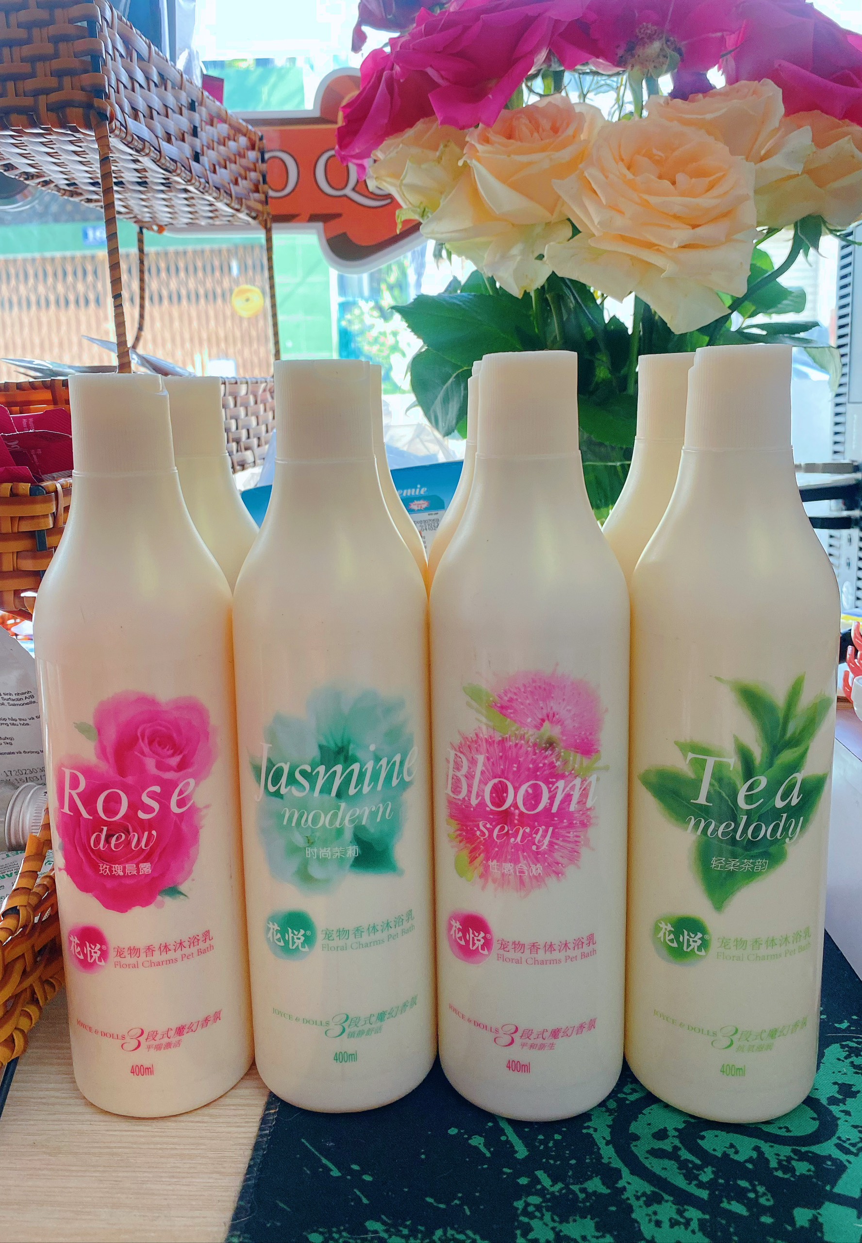 Sữa tắm Joyce & Dolls với công thức tạo hình 3D dành cho tất cả các giống chó mèo. Dung tích: 400ml gồm 5 mùi + Joyce & Dolls Sexy Bloom chứa tinh dầu hoa