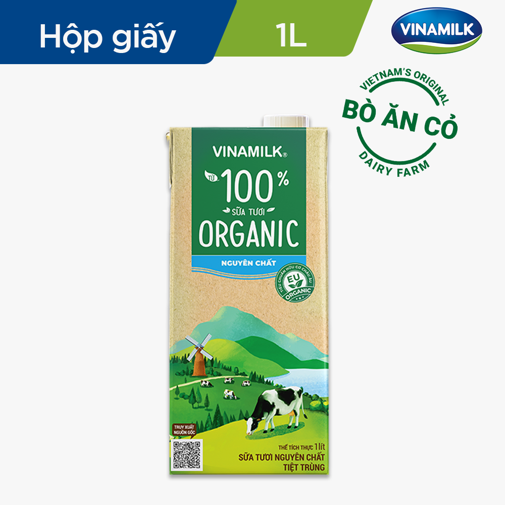 Tên sản phẩm: Thực phẩm bổ sung Sữa tươi tiệt trùng Vinamilk 100% Organic không đường - Hộp giấy 1L Sữa tươi Vinamilk 100% Organic được sản xuất từ nguồn sữa của những cô bò organic được chăn thả tự nhiên trên những đồi cỏ rộng lớn của vùng đất Đà Lạt. Hiểu rằng môi trường sống ảnh hưởng trực tiếp đến chất lượng của nguồn sữa tươi organic, Vinamilk đã chọn Đà Lạt là nơi lý tưởng phát triển trang trại bò sữa organic. Với điều kiện tự nhiên có nhiều điểm tương đồng với Châu Âu, Đà Lạt thực sự là thiên đường của những cô bò sữa ưa khí hậu ôn đới và là miền đất lý tưởng cho đàn bò hữu cơ sinh sống và phát triển.    Vinamilk tiên phong cho ra đời dòng sản phẩm Sữa tươi Vinamilk 100% Organic cao cấp theo tiêu chuẩn hữu cơ Châu Âu lần đầu tiên được sản xuất ngay tại Việt Nam.