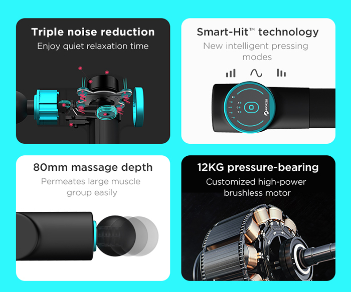 • Độ sâu massage 80mm, massage vào nhóm cơ lớn dễ dàng