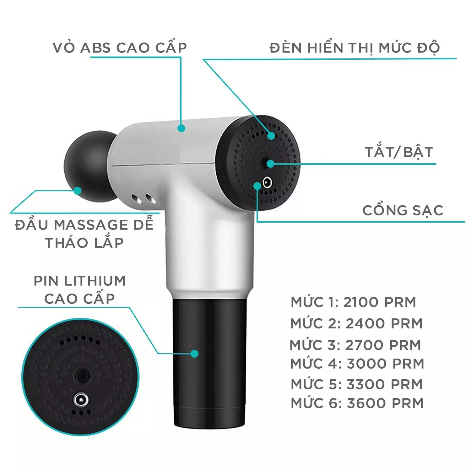 - Công nghệ bộ gõ tạo cho lực đấm mạnh mẽ, hiệu quả cho việc giảm đau, căng cơ Thông số kỹ thuật Tên sản phẩm: Máy massage cao cấp Gun Focus Model: Gun 2020 Điện áp: 13.3VDC/ 1.0A Pin: Lithium Dụng lượng pin: 2400 mAh Công suất: 80W Chất liệu: Nhựa ABS Màu sắc: đen, đỏ, xanh, bạc (GIAO MÀU NGẪU NHIÊN) Trọng lượng: 1.2kg Kích thước: 24x18x5.2 Cm. Hoạt động: 4 chế độ/ 6 tốc độ Rung động: 3200 lần/phút