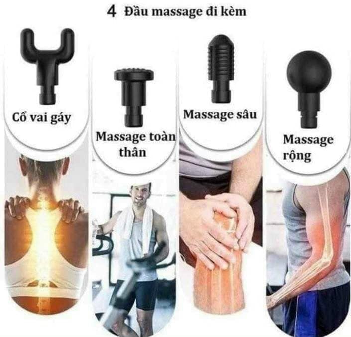 ✨Súng Massage Cầm Tay, Máy Massage Cổ Vai Gáy, Toàn Thân, 4 Đầu 6 Cấp Độ, Máy Massage Đa Năng