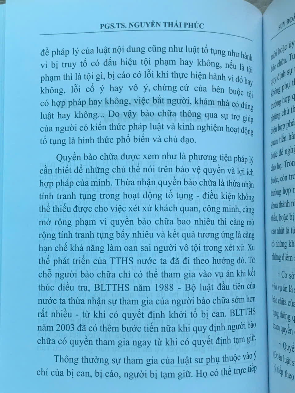 Vào thời điểm 2003 có rất nhiều vấn đề lý luận cốt lõi có tính nền tảng của TTHS còn khá mới mẻ với khoa học ở Việt Nam như nguyên tắc tranh tụng, đoán vô tội, mô hình TTHS, các chức năng cơ bản của TTHS, quyền bào chữa của bị can… và mối quan hệ giữa chúng với nhau. Thí dụ như tranh tụng là gì? Có thể thừa nhận tranh tụng trong TTHS Việt Nam được không? Cần hiểu thế nào về suy đoán vô tội? Buộc tội, bào chữa và xét xử có quan hệ với nhau và với định hướng hoàn thiện mô hình TTHS nước ta thế nào? Đặc quyền của bên bào chữa (favor defensionis) và quyền miễn trừ làm chứng là gì….. Quá trình soạn thảo ban hành Bộ luật TTHS 2003, Bộ luật TTHS 2015 và đặc biệt là việc ban hành Nghị quyết 49 ngày 2/6/2005 về Cải cách tư pháp đã tạo ra động lực mạnh mẽ cho sự phát triển của khoa học pháp lý nói chung và khoa học TTHS nói riêng ở nước ta. Nhiều nội dung của những vấn đề nêu trên đã được những người làm công tác giảng dạy, nghiên cứu về TTHS quan tâm, trong đó có PGS.TS Nguyễn Thái Phúc với mong muốn đóng góp vào sự thành công của cải cách tư pháp nói chung và hoàn thiện mô hình TTHS nước ta nói riêng theo hướng ngày càng tiến bộ nhân văn phù hợp mục tiêu xây dựng nhà nước pháp quyền ở Việt Nam.