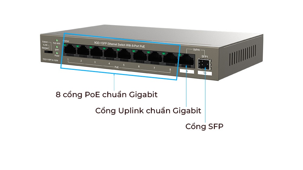 ✨Switch Tenda 8 port PoE TEG1110PF-102W – Hàng Chính Hãng