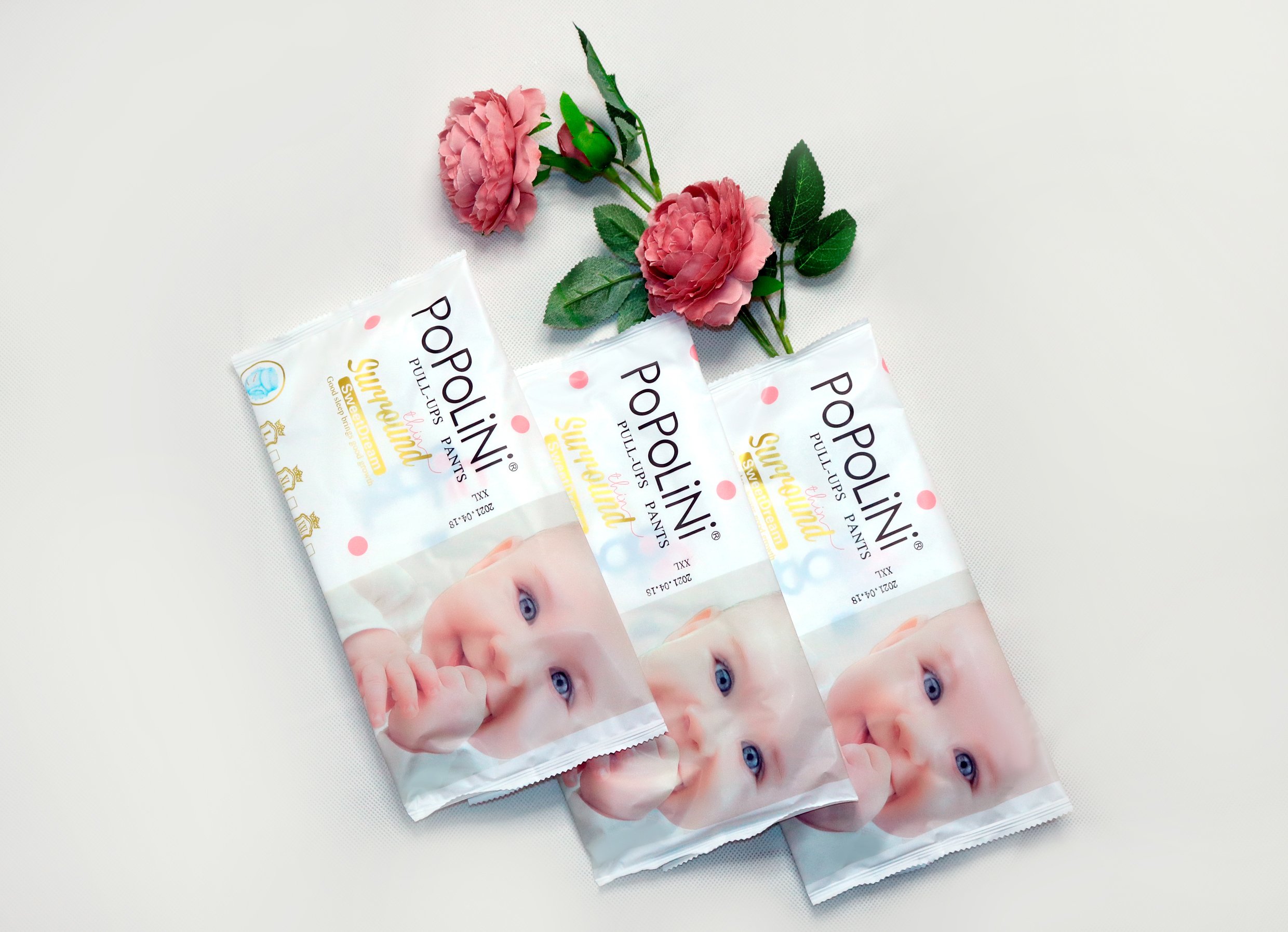 - Tã/ Bỉm POPOLINI với phần lưng thun co giãn 360 độ linh hoạt và mềm mại giúp hoạt động của bé trở nên dễ dàng, năng động.