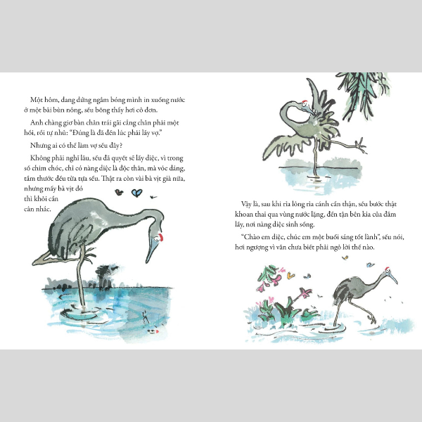 Sếu sống ở mé này đầm lầy, còn diệc ở mé bên kia. Một ngày nọ, sếu chợt thấy mình cô đơn biết bao, và nghĩ rằng đã đến lúc ngỏ lời xin cưới nàng diệc. Nhưng cuộc đời đâu có dễ dàng, chuyện cầu hôn hóa ra gian nan hơn sếu tưởng rất nhiều… Hãy theo dõi cuốn sách tuyệt hay này nhé!