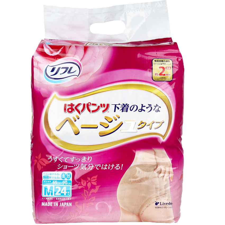 - Khóa đôi giúp giữ cố định vị trí tã. Công nghệ khử mùi Công nghệ tiến tiến giúp khử mùi rất tốt, loại bỏ mùi do nước tiểu sản sinh ra. Đối tượng sử dụng: - Phù hợp với người già, ngươi bệnh còn khả năng tự di chuyển, phụ nữ sau sinh - Tiện lợi khi đi du lịch, đi xa Quy cách - Đóng gói Size M: vòng bụng 65-90 cm, 24 miếã quần / gói Size L: vòng bụng 80-105 cm, 22 miếng tã quần / gói Ngoài ra, Tả bỉm quần người lớn LiveDo Nhật bản có thể kết hợp với miếng lót thấm hút bên trong để tăng cường độ thấm hút cho người dùng Có 02 loại miếng lót thấm hút dùng cho ban ngày và ban đêm: