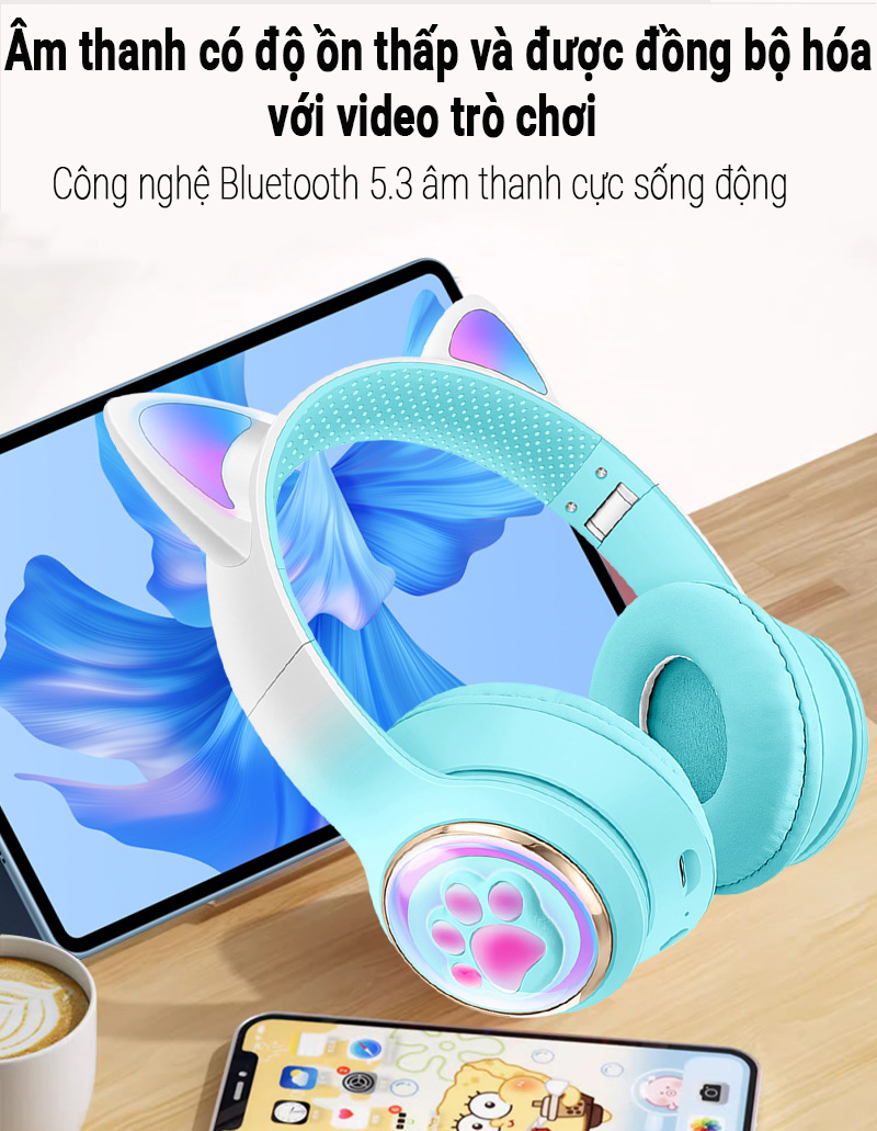 Tai nghe bluetooth tai mèo phát sáng teement, tai nghe không dây, tai nghe chụp tai bluetooth 5.3, đèn led và âm bass mạnh mẽ -hàng chính hãng Tai nghe mèo bluetooth phát sáng teemnt vớI nhiều màu sắc nổI bật, thiết kế tinh và xinh xắn phù hợp vớI nhiều phong cách từ nữ tính cho đến cá tính.Tai nghe vinbuy vb-bm39được thiết kế đệm đầu tai nghe cực dày và cực êm giúp giảm áp lực trên đầu cũng như tạo cho bạn cảm giác thoảI máI khi sử dụng tai nghe, khung nhôm razer kraken giúp cho tai nghe nhẹ nhàng và linh hoạt hơn.