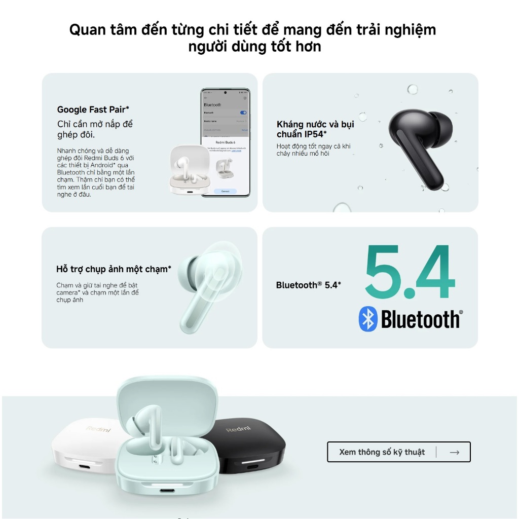 ✨Tai Nghe Bluetooth Xiaomi Redmi Buds 6 - Hàng Chính Hãng, Bảo Hành 6 Tháng