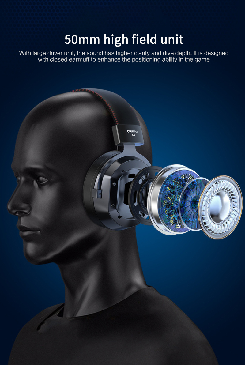 Features: 50mm driver unit can capture more sound details, large sound field, 3D surround stereo sound effect. Adopt omnidirectional adjustable noise reduction microphone, 360 sound pickup, you can freely adjust the microphone to choose the