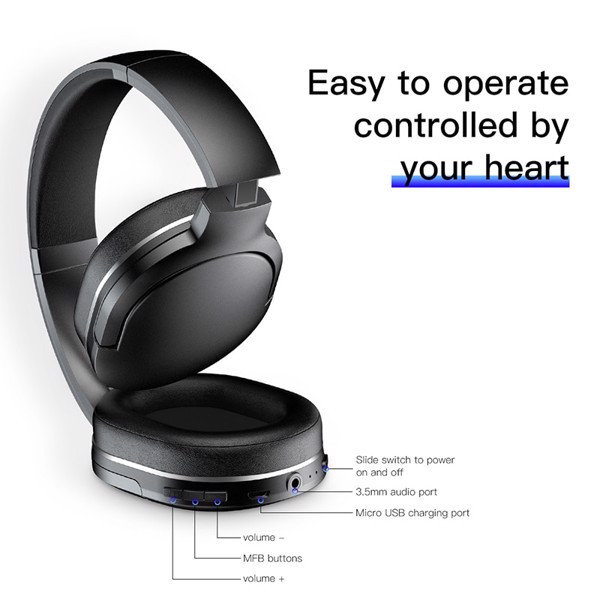 Tai nghe chụp tai bluetooh không dây cao cấp Baseus Encok D02 (Bluetooth 5.0, âm thanh Hifi Surround, 25 giờ nghe nhạc liên tục)             THIẾT KẾ MỚI Với thiết kế mới dạng gập và dung lượng pin cao, thêm vào đó là chất âm Bass cực mạnh cùng với một vẻ ngoài thanh lịch đơn giản mà gọn nhẹ chiếc tai này sẽ phục vụ nhu cầu giải trí hay học tập của bạn mọi lúc mọi nơi       KHẢ NĂNG THU GỌN Với thiết kế gập và điều chỉnh xoay phù hợp với phần đầu của bạn, kích thước gập chỉ như 1 bàn tay. Chức năng này giúp bạn dễ dàng cất giữ mang đi bên người.       THIẾT KẾ AN TOÀN CHO BẠN Chất liệu da mềm, nhẹ vừa vặn với tai, có dây đeo bằng silicon để bảo vệ đầu, áp dụng thiết kế công thái học để che tai, đảm bảo tai bạn không bị tổn thương khi đeo lâu, tai nghe sẽ không dễ rơi khi chạy bộ.       CHẤT ÂM MẠNH MẼ & ĐAM MÊ Áp dụng màng kép tổng hợp để thiết kế loa, sẽ gây cảm giác cực chất khi bạn nghe nhạc rock and roll và tinh tế khi nghe pop.           CHẤT LƯỢNG ĐƯỢC KIỂM CHỨNG Sau thời gian dài được kiểm định và sử dụng bởi các chuyên gia cũng như là người yêu âm nhạc từ khắp nơi. Chiếc tai nghe này, dần được nâng cấp đáng kể để cho ra đời một sản phẩm hoàn chỉnh         THỞI GIAN SỬ DỤNG DÀI LÂU Với công nghệ pin Polymer mới hiện nay và dung lượng pin lên đến 450mAh, chiếc tai nghe của bạn có thể chơi liên tục 350 bài hát và thơi gian chờ lên đến 30 ngày.       HỖ TRỢ CỔNG TAI NGHE AUX Khi tai nghe hết pin, bạn cũng có thể cấm jack 3.5mm vào cổng AUX trên tai nghe để sử dụng. Bạn sẽ không bỏ lỡ giây phút nào.       CÔNG NGHỆ ĐÀM THOẠI MICRO PHONE 360 ĐỘ Cho dù miệng bạn đang chỉ vào hướng nào, tai nghe có thể nắm bắt chính xác thông tin giọng nói của bạn và đảm bảo cuộc gọi rõ ràng với độ trung thực âm thanh cao       DỄ DÀNG ĐIỀU KHIỂN Chế độ nhạc: Bấm nhanh nút MFB để phát hoặc tạm dừng. Phát bài trước thì bấm và giữ phím Vol "-" trong khoảng 2s. Phát bài tiếp theo thì bấm và giữ phím Vol "+" trong khoảng 2s. Chế độ cuộc gọi. Ấn nhanh phím MFB để nghe cuộc gọi và ấn giữ 2s để từ chối cuộc gọi.         HÌNH ẢNH SẢN PHẨM