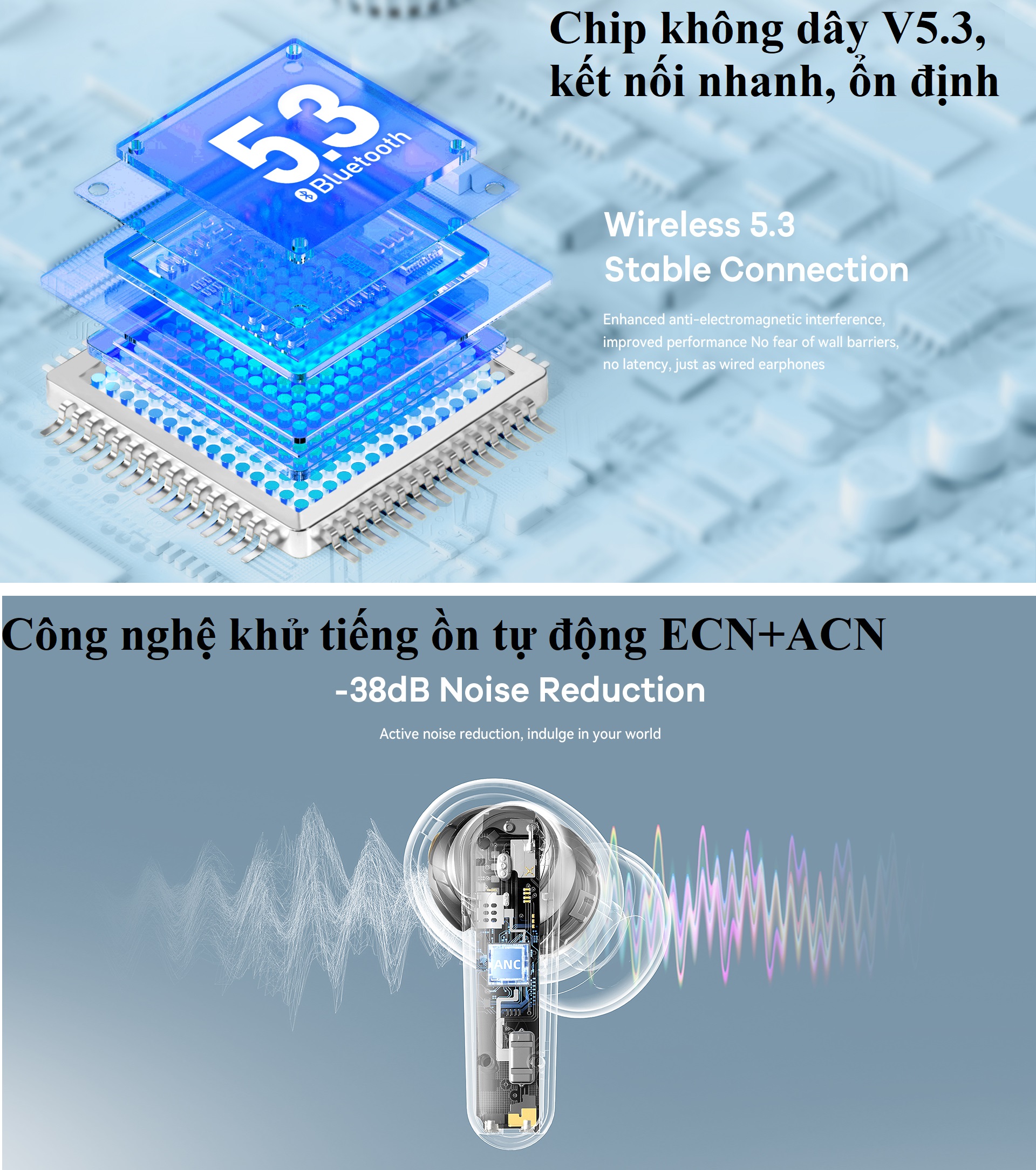 Đích thực không dây, nhẹ như bông - Thiết kế bề ngoài hoàn toàn trong suốt, có được trải nghiệm thẩm mỹ công nghệ sống động. - Điều chỉnh công nghệ âm thanh chuyên nghiệp,