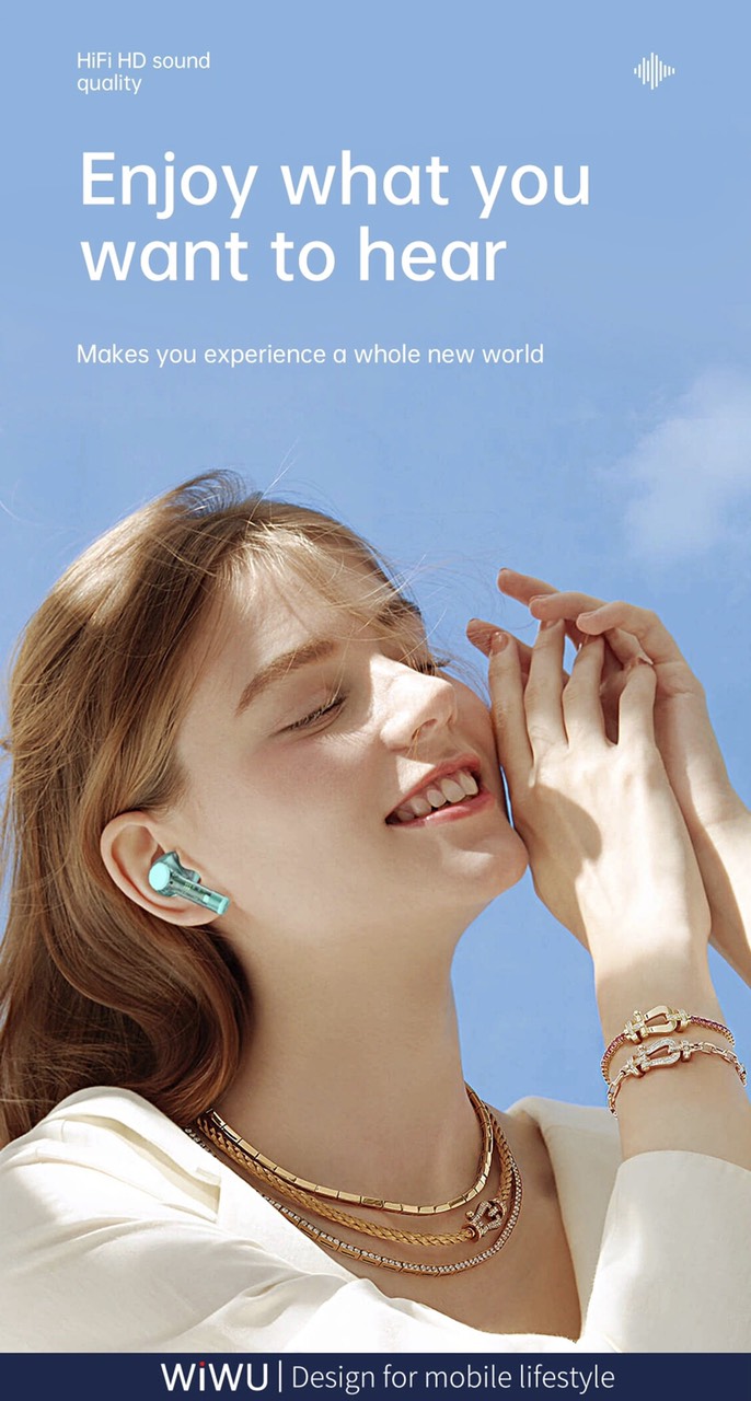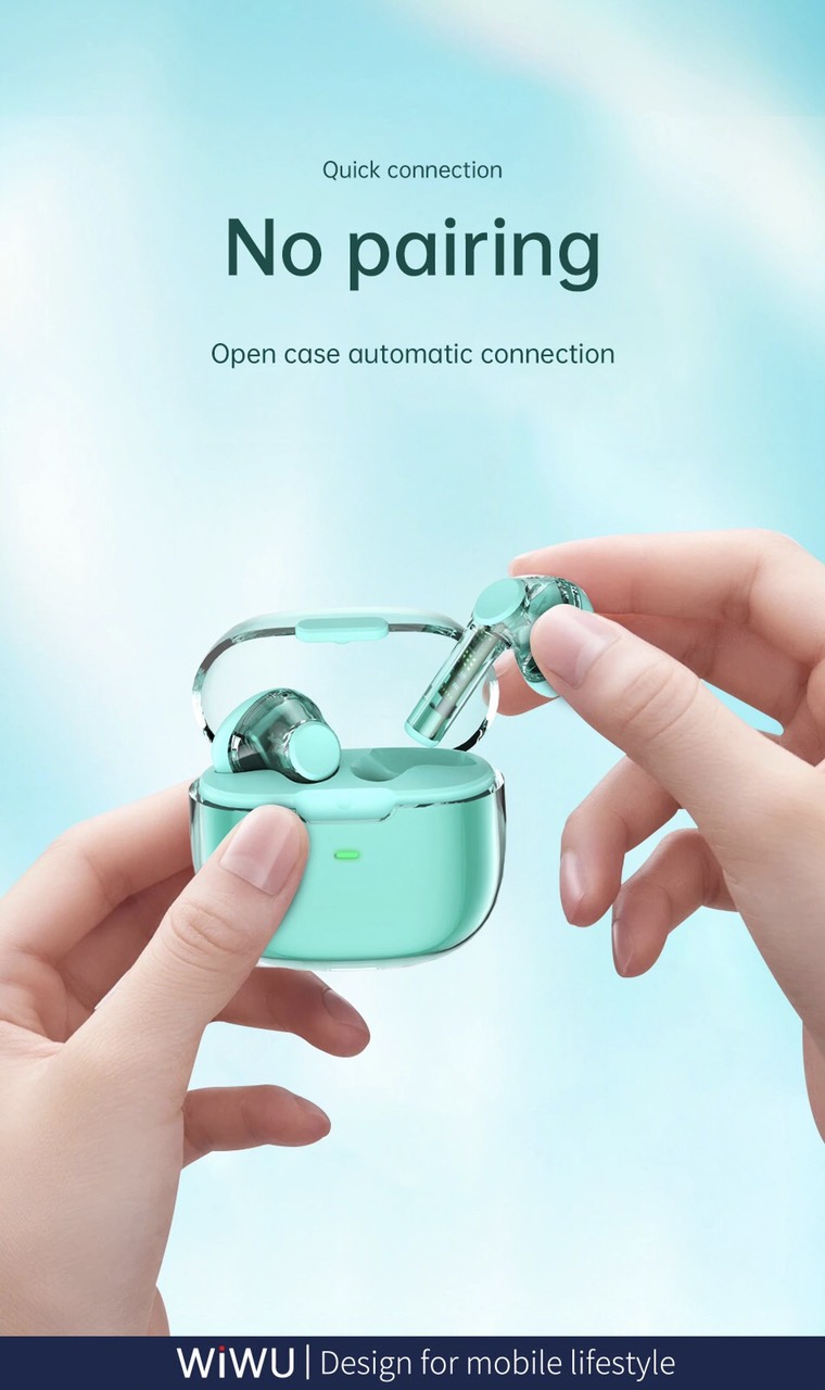 Đích thực không dây, nhẹ như bông - Thiết kế bề ngoài hoàn toàn trong suốt, có được trải nghiệm thẩm mỹ công nghệ sống động. - Điều chỉnh công nghệ âm thanh chuyên nghiệp,