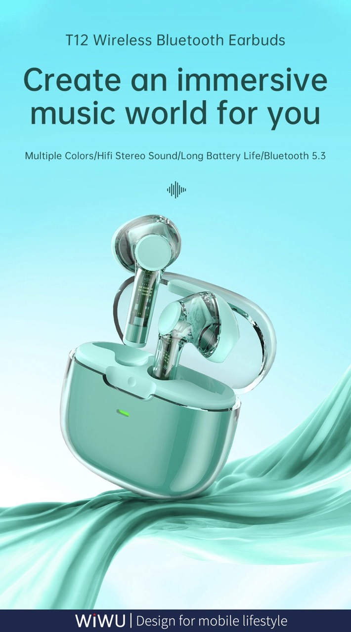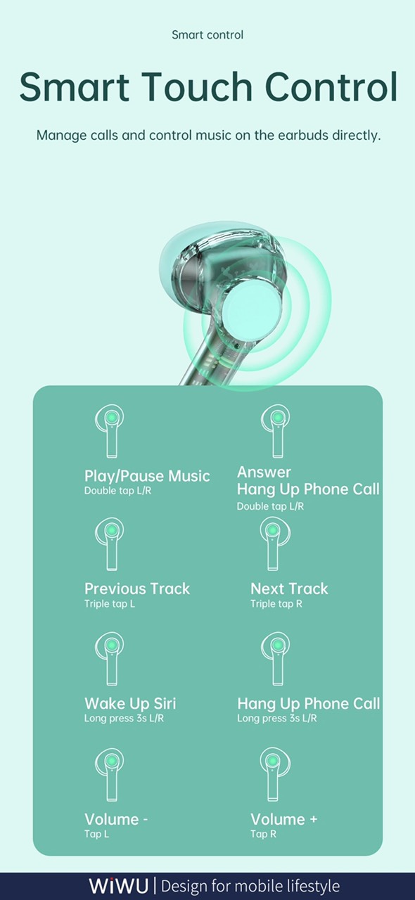 ✨Tai nghe Wiwu Pure Sound TWS12 kết nối Bluetooth V5.3, có điều khiển cảm ứng trực tiếp trên tai nghe - Hàng chính hãng