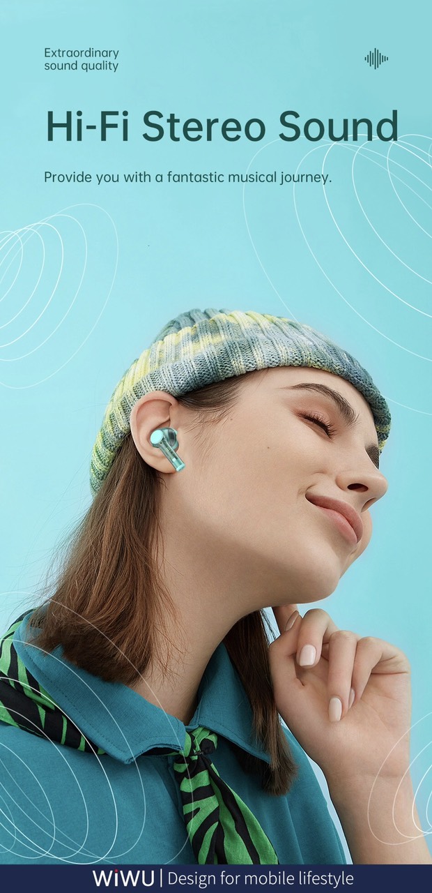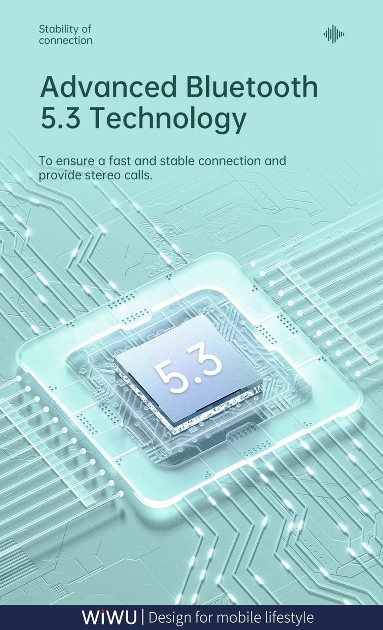 Tai nghe Cobra 2 Thương hiệu: Wiwu Thông tin sản phẩm - Thiết kế tai nghe nước thể thao có độ trễ thấp để chơi game - Tai nghe có chế độ chờ lâu với