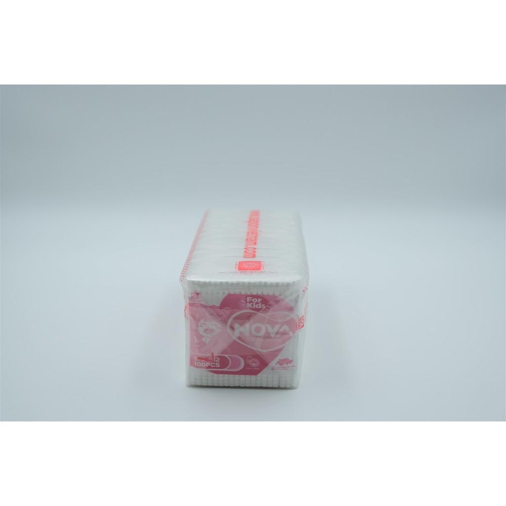 Tăm bông NOVA Baby cho trẻ sơ sinh – đầu bông mềm mịn, không rụng sợi, thân que dẻo, an toàn cho bé. Túi zip tiện lợi, mỗi túi 100 que, combo 12 túi tiết