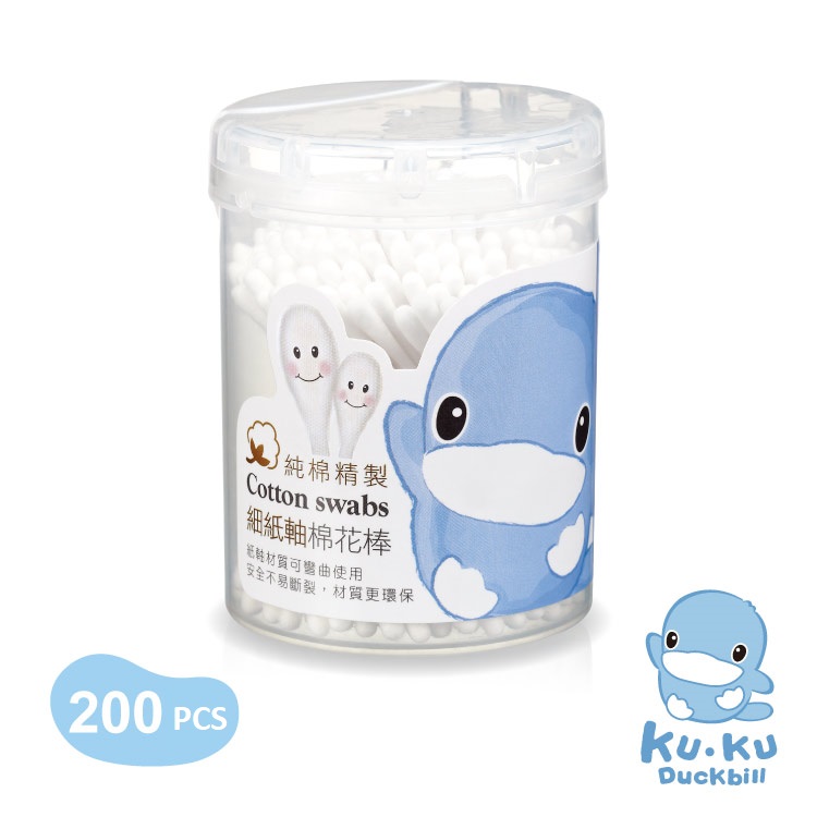Tăm Bông Vệ Sinh Cho Bé KUKU KU1102 - 200 Cái làm bằng chất liệu cotton cao cấp, mềm mại, thấm hút nhanh chóng giúp vệ sinh tai, rốn... hiệu quả, không gây tổn thương bé.