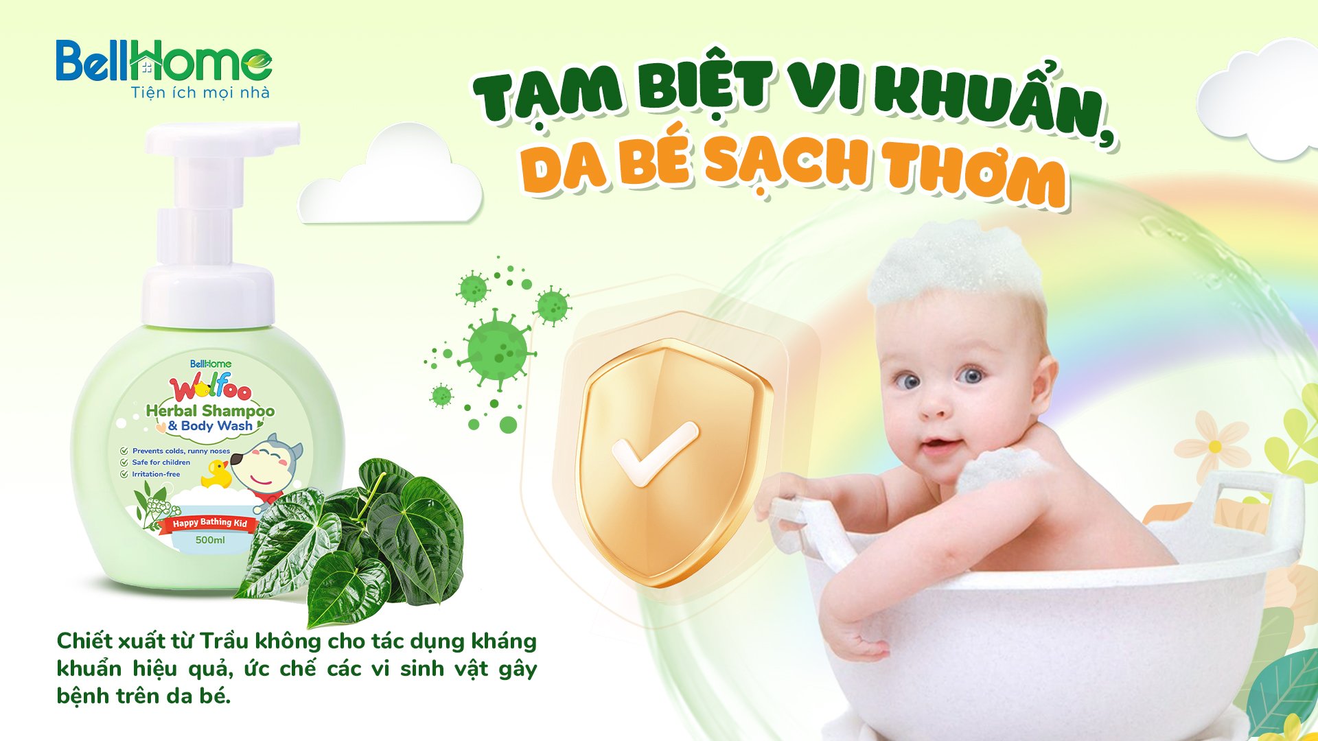 Tắm gội Thảo dược Wolfoo Baby Bell Home - Tốt cho bé, nhàn cho mẹ