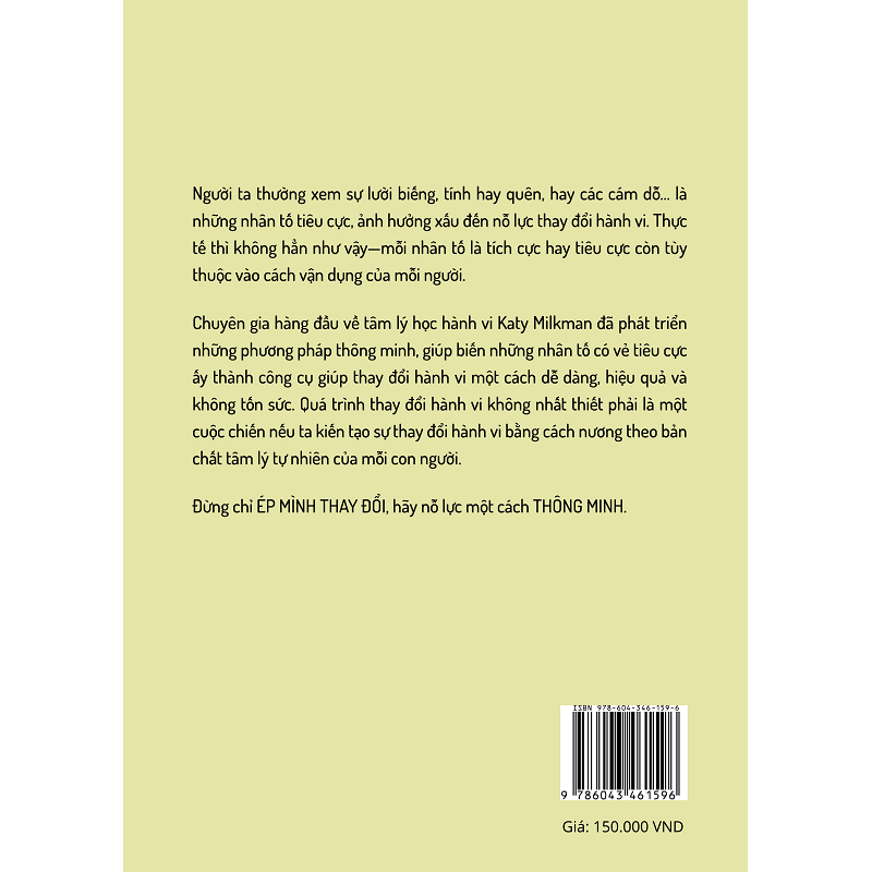 Chuyên gia hàng đầu về tâm lý học hành vi Katy Milkman đã phát triển những phương pháp thông minh, giúp biến những nhân tố có vẻ tiêu cực ấy thành công cụ giúp thay đổi hành vi một cách dễ dàng, hiệu quả và không tốn sức. Quá trình thay đổi hành vi không nhất thiết phải là một cuộc chiến nếu ta kiến tạo sự thay đổi hành vi bằng cách nương theo bản chất tâm lý tự nhiên của mỗi con người.