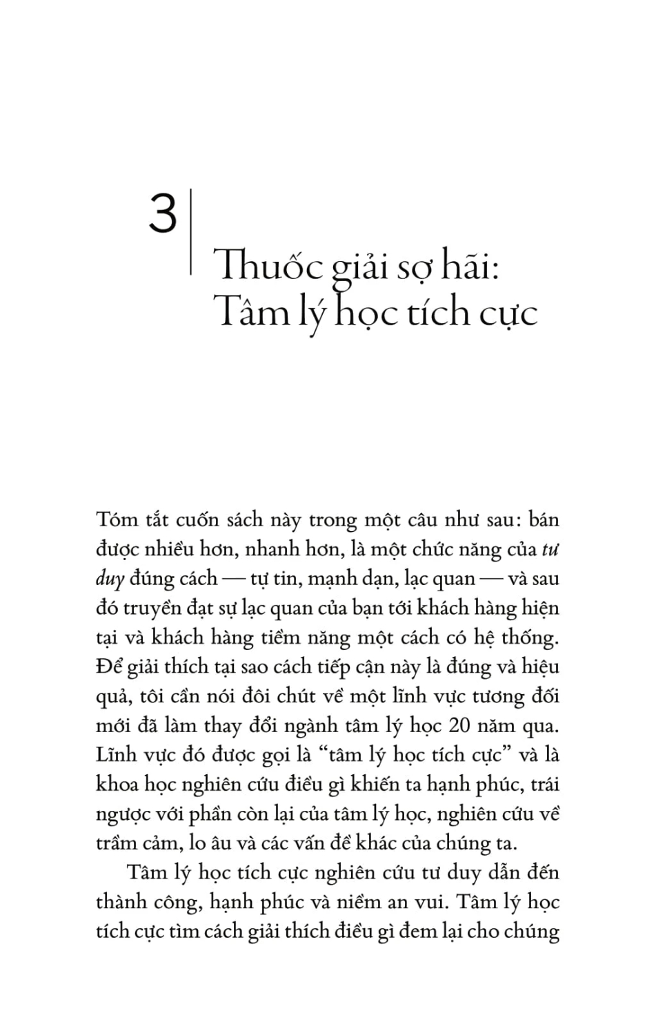 Bạn sẽ học được đúng cách vượt qua nỗi sợ hãi — sát thủ “diệt” doanh số — và thay bằng sự tự tin, lạc quan, lòng biết ơn, niềm vui và chủ động trong công việc bán hàng. Đây là cuốn sách đầu tiên vận dụng tâm lý học tích cực để biến đổi cách chúng ta làm việc giúp bạn bán được nhiều hơn.