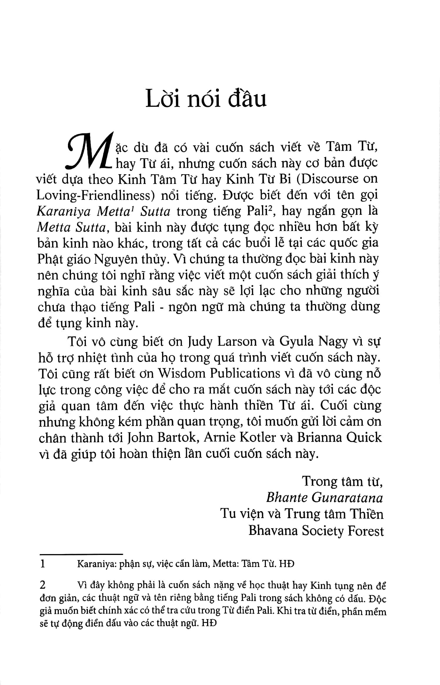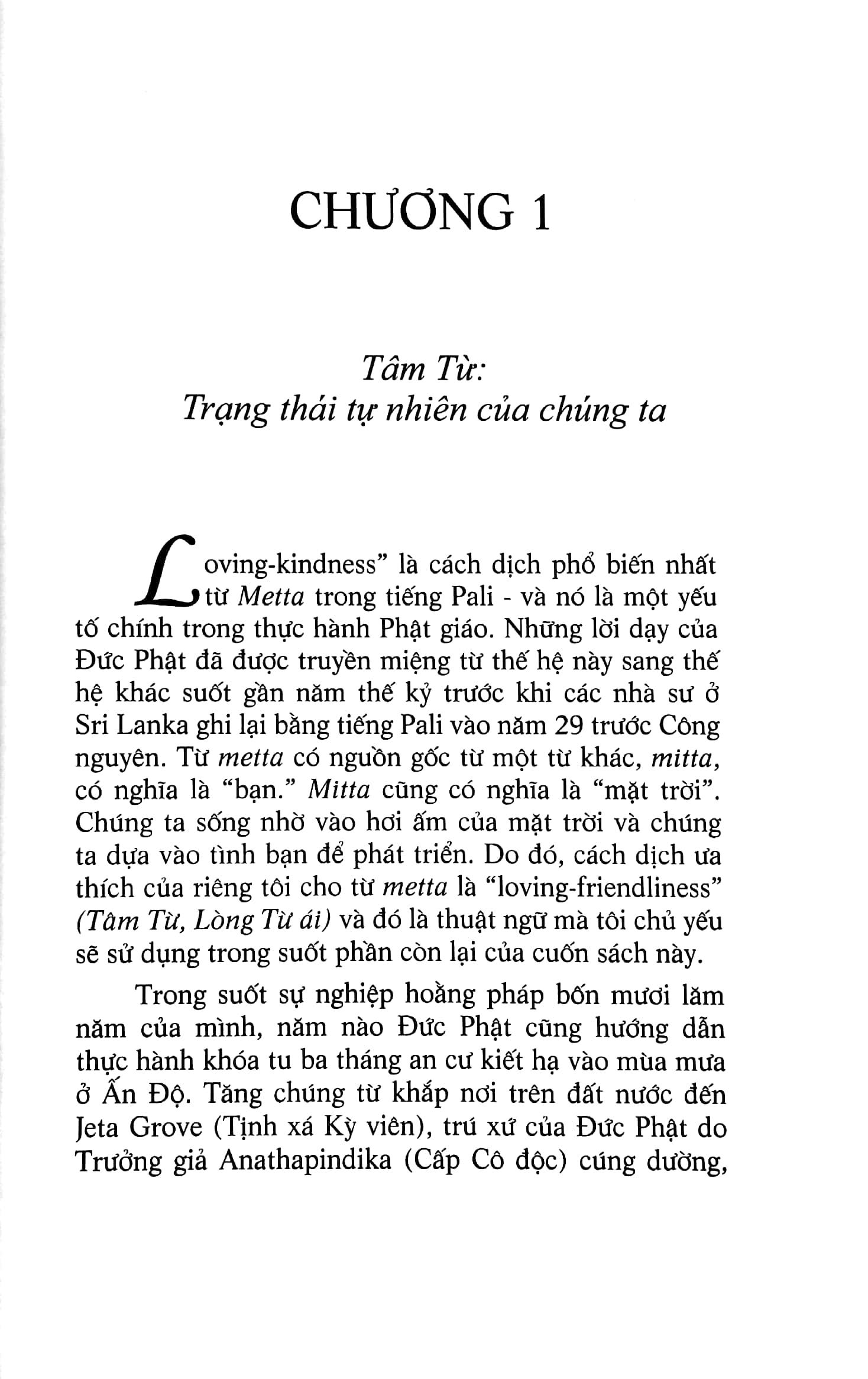 Cuốn sách là sự giới thiệu đơn giản, gần gũi, rõ ràng và tuyệt vời về Tâm Từ và được đánh giá là một cẩm nang tiêu chuẩn cho việc thực hành metta. ”