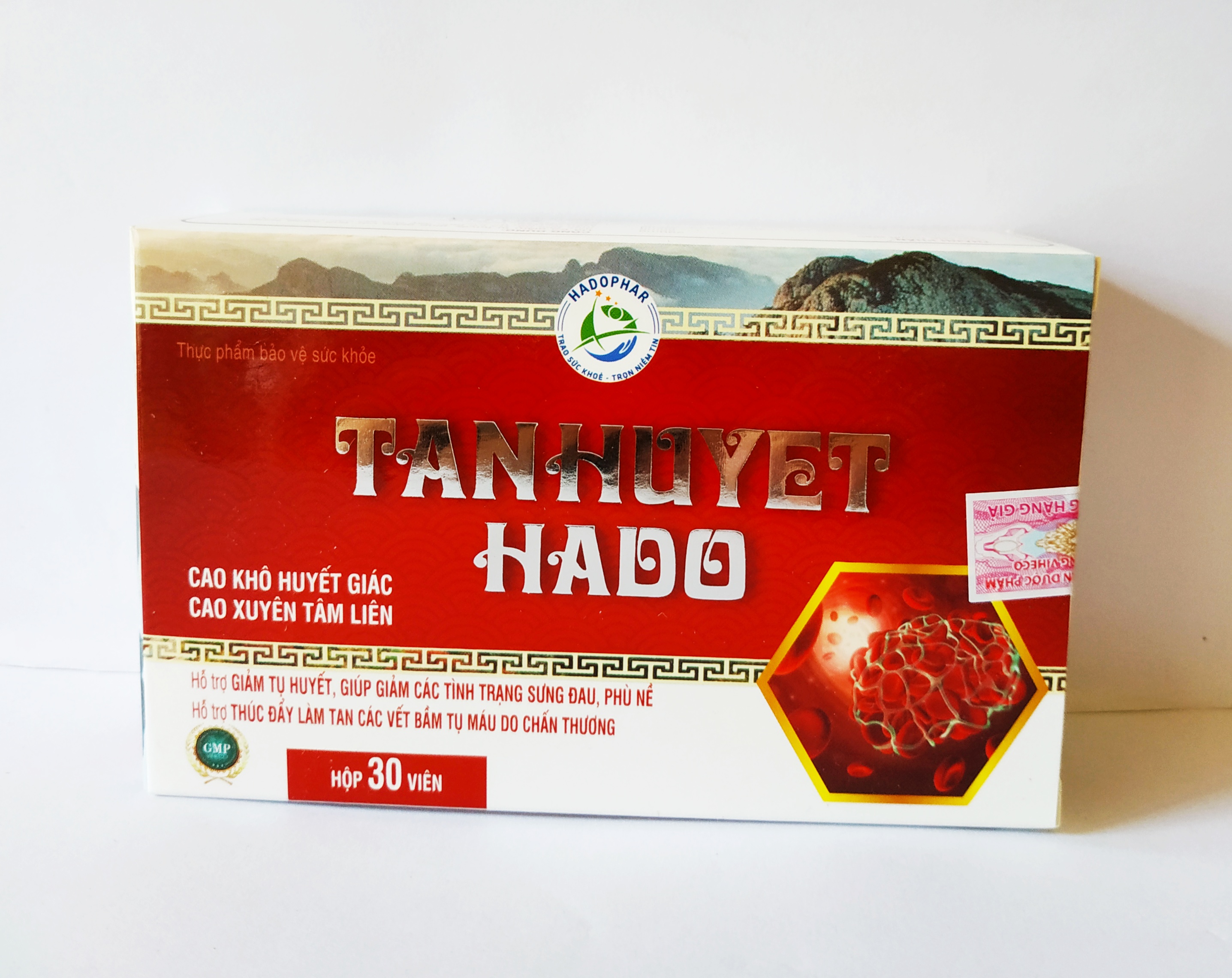 Mua tại TiktokTAN HUYẾT HADO (LONG HUYẾT) là phương thuốc bí truyền thành phần chính là vỏ thân hóa gỗ màu đỏ của cây Dracaenae cambodianae già cỗi, sống hàng trăm năm trên các núi đá. Từ lâu nó đã được biết đến như là vị thuốc quý bí truyền của các võ sư, thầy thuốc dùng đặc trị nội ngoại thương như: Tiêu sưng, giảm đau, cầm máu, giúp nhanh liền viết thương do dao kiếm, bị đòn, té ngã, các chấn thương do va đập mạnh gây bầm tím, tụ máu, sưng đ CÔNG DỤNG: Hỗ trợ giảm tụ huyết, giảm tình trạng sưng đau phù nề Hỗ trợ làm tan các bầm tụ do chấn thương