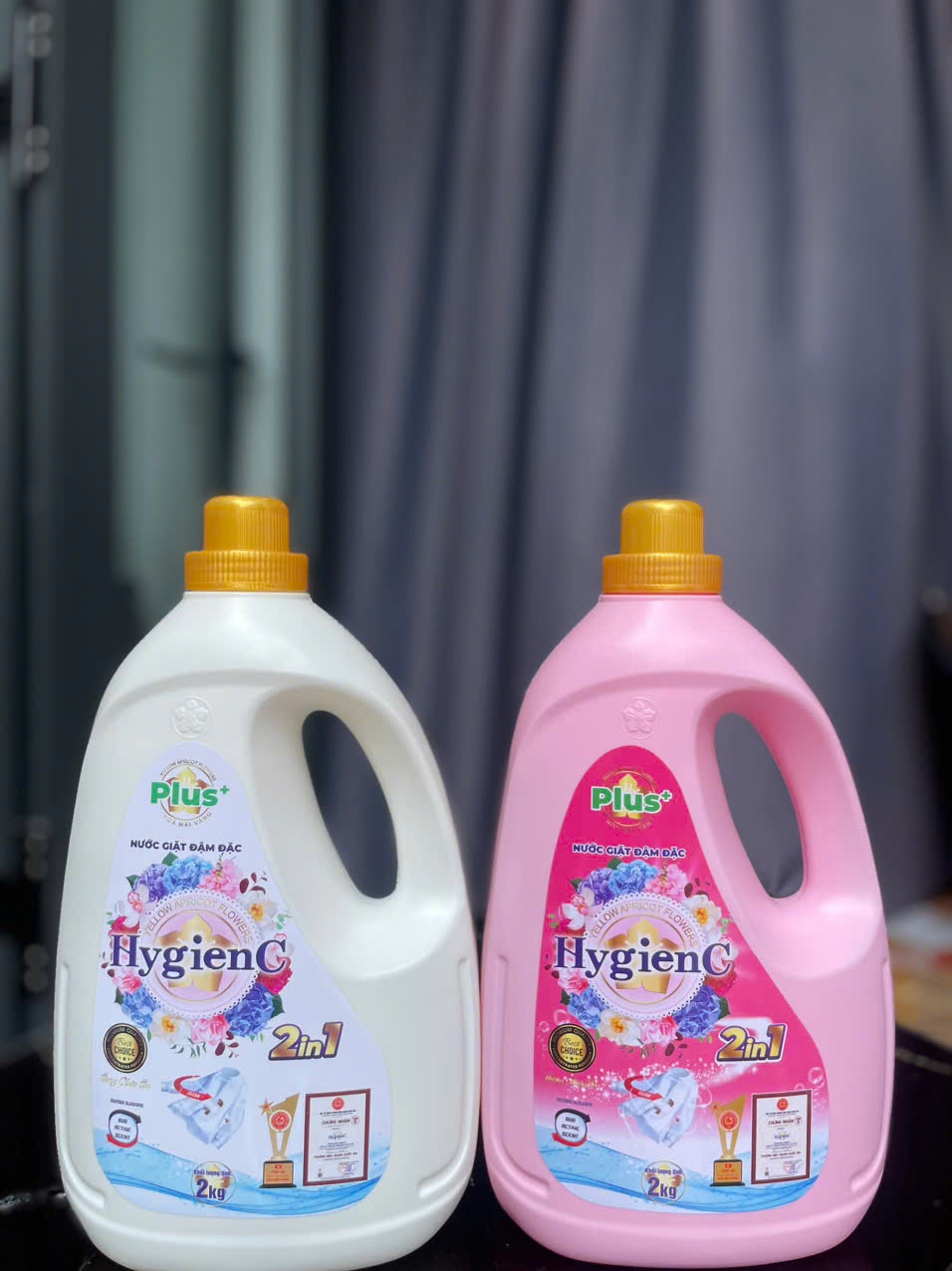 COMBO 2 can nước giặt xả 2 in1 HygienC PLUS 2kg, hang VN, Công nghệ thái đậm dặc, bền màu, lưu hương quần áo thơm mát dài lâu