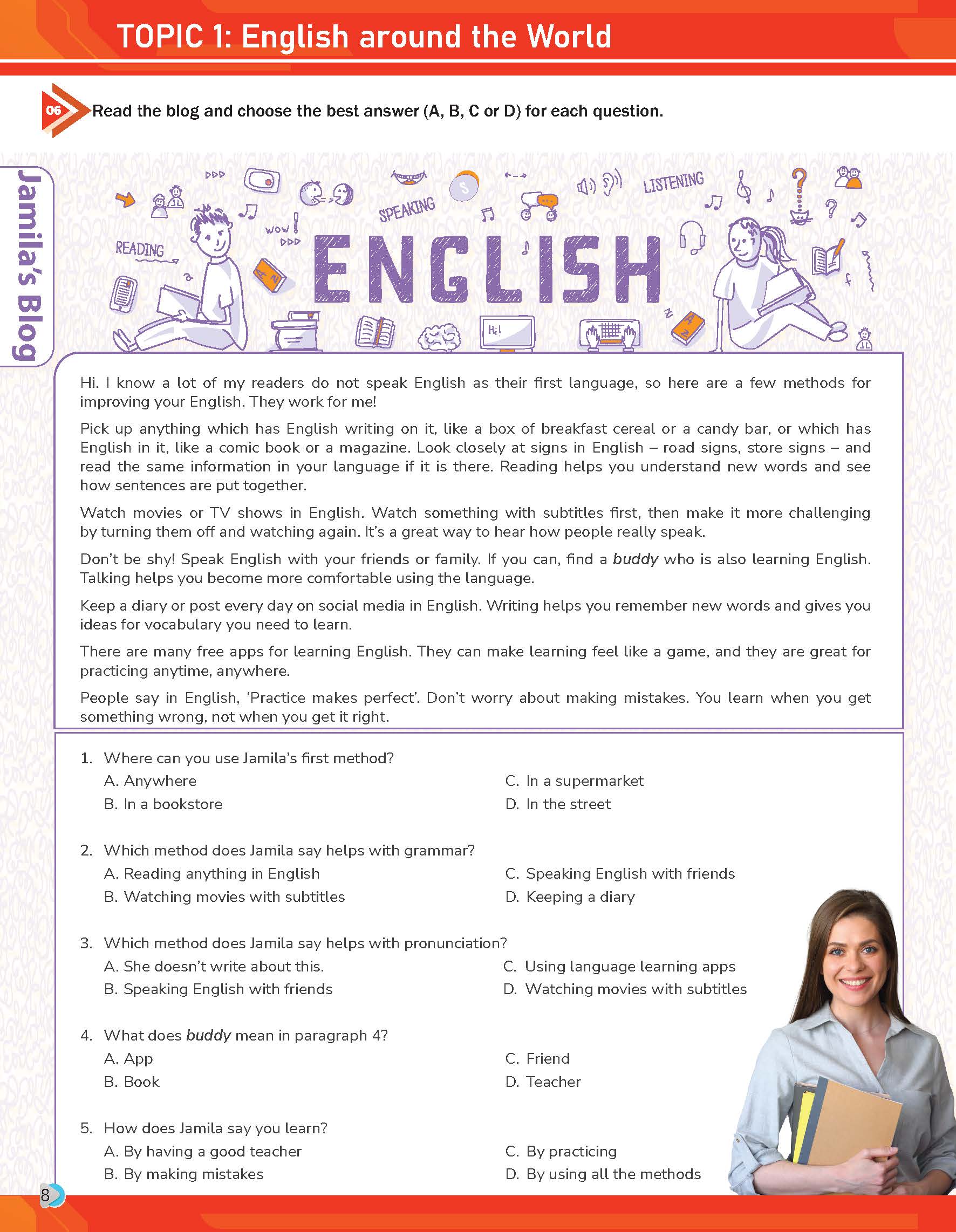 Bộ sách Tăng cường Kĩ năng Đọc, Nghe và Giao tiếp được thiết kế dành cho học sinh Trung học cơ sở và Trung học phổ thông (từ lớp 6 đến lớp 12) Với các