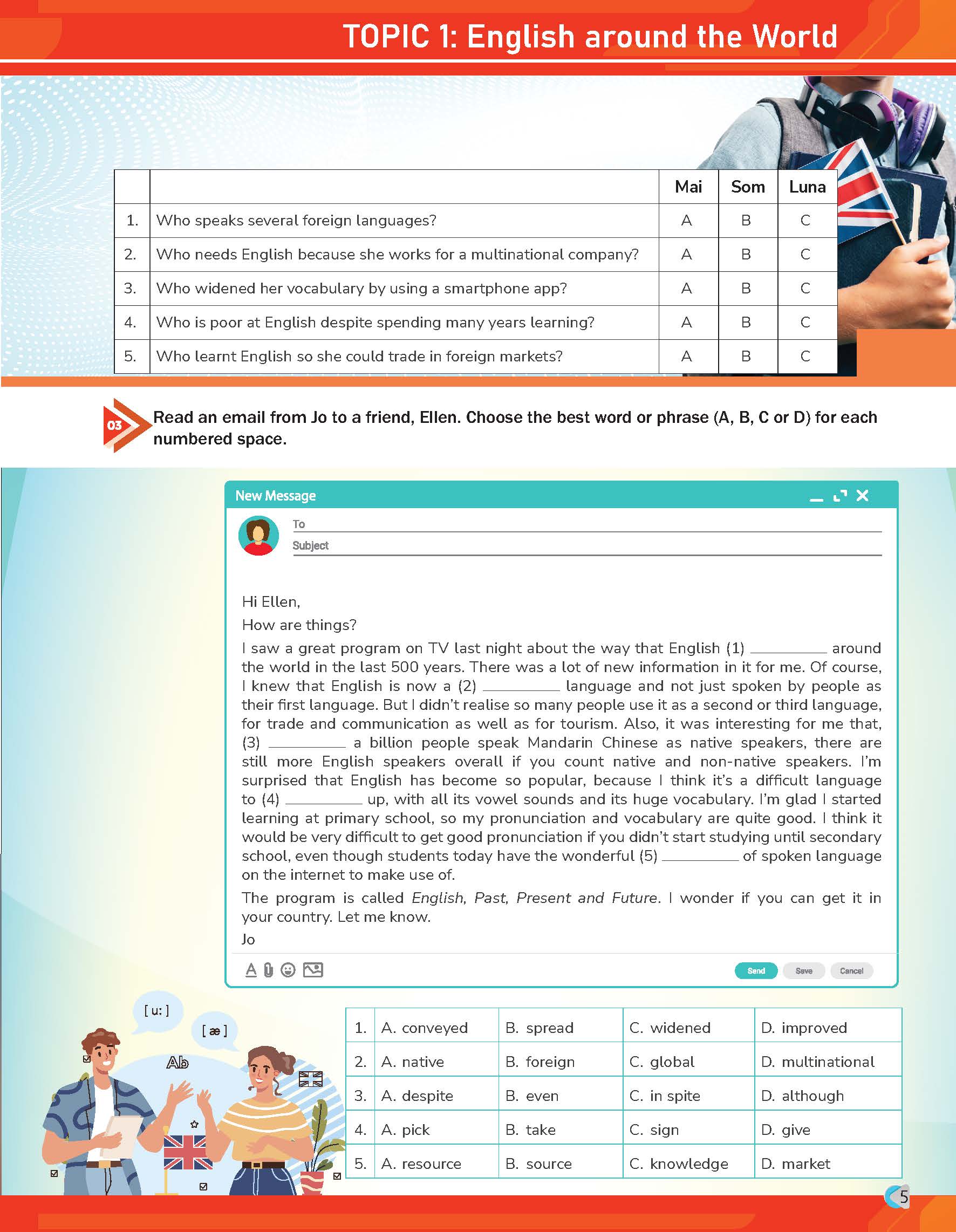 Nội dung do người bản xứ biên soạn, giúp học sinh nâng cao khả năng Đọc, Nghe và giao tiếp bằng tiếng Anh trong các tình huống thực tế