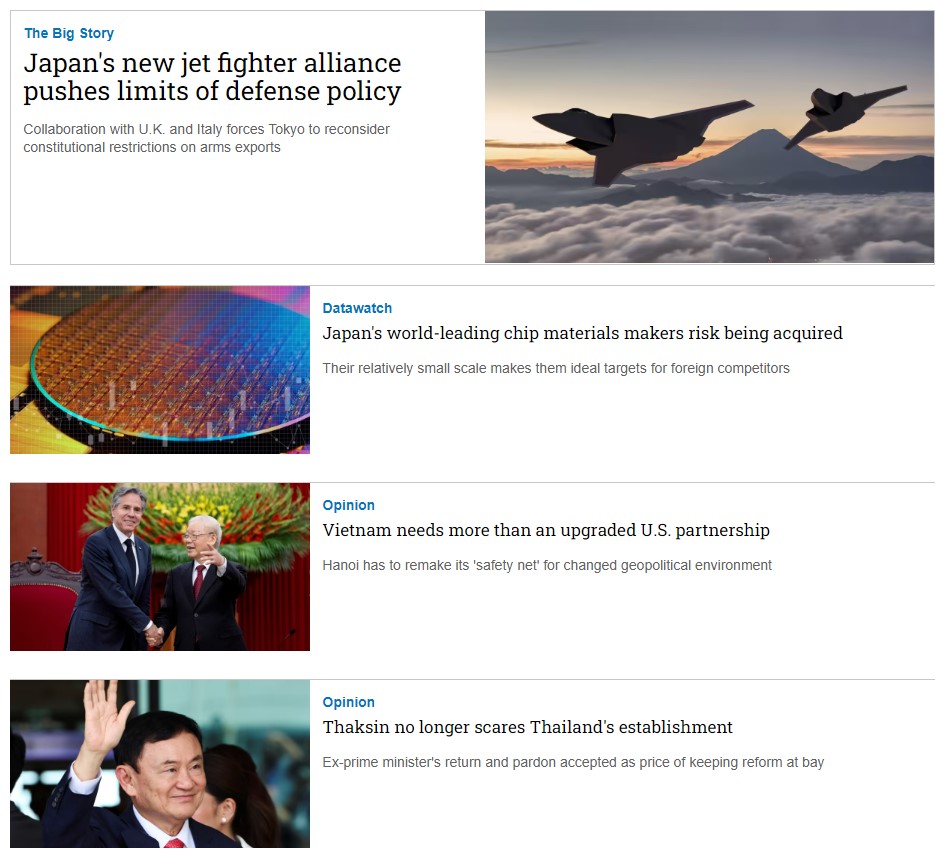 Nikkei Asia là tạp chí bằng tiếng Anh rất uy tín của Nikkei - Nhật Bản, chuyên viết về Xu hướng khu vực châu Á - Thái Bình Dương, Kinh tế, Công nghệ, Chính trị,