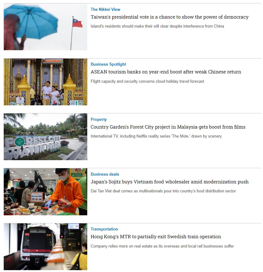 Mỗi tuần, Nikkei Asia xuất bản hơn 16,000 ấn phẩm đến tay độc giả của 30 quốc gia. Nikkei là thương hiệu báo tài chính uy tín và lớn nhất thế giới, mỗi ngày tại Nhật Bản phát hành 4 triệu bản. Tập đoàn còn sở hữu các đầu báo uy tín khác như Financial Times, Dealstreet Asia,