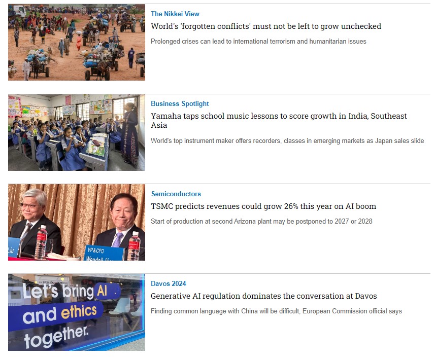 Nikkei Asia là tạp chí bằng tiếng Anh rất uy tín của Nikkei - Nhật Bản, chuyên viết về Xu hướng khu vực châu Á - Thái Bình Dương, Kinh tế, Công nghệ, Chính trị,