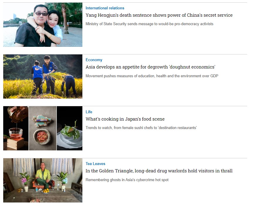 Nikkei Asia là tạp chí tiếng Anh có tên tuổi thuộc tập đoàn Nikkei - Nhật Bản, chuyên viết về những xu hướng kinh tế, công nghệ, chính trị của các nước trong khu vực châu Á - Thái Bình Dương gồm có Việt Nam. Ngoài ra còn cung cấp các phân tích từ chuyên gia, nhà báo về đời sống và văn hóa các nước châu Á. (Trending, Business, Markets,Tech, Politics, Economy, Features, Opinion, Life & Arts).