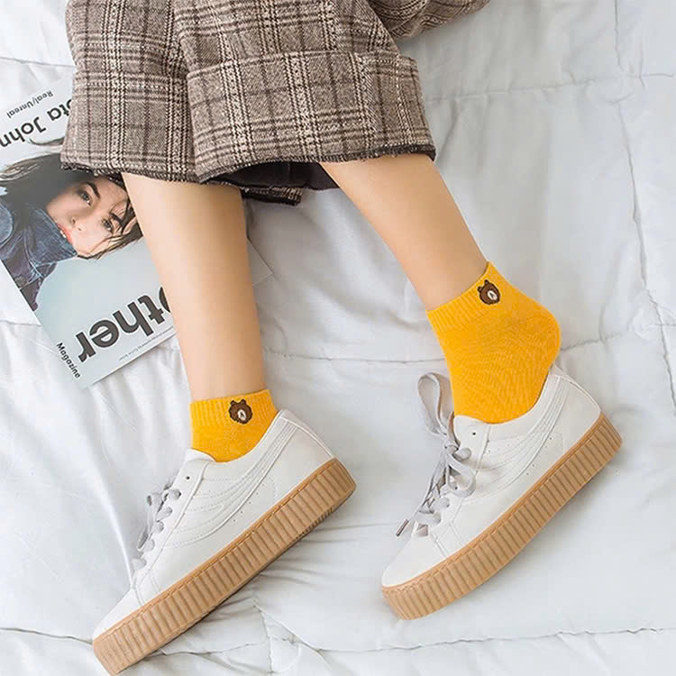 Sét 5 đôi Tất chân họa tiết gấu cổ ngắn | bán trên kênh tiktok anhhongreview